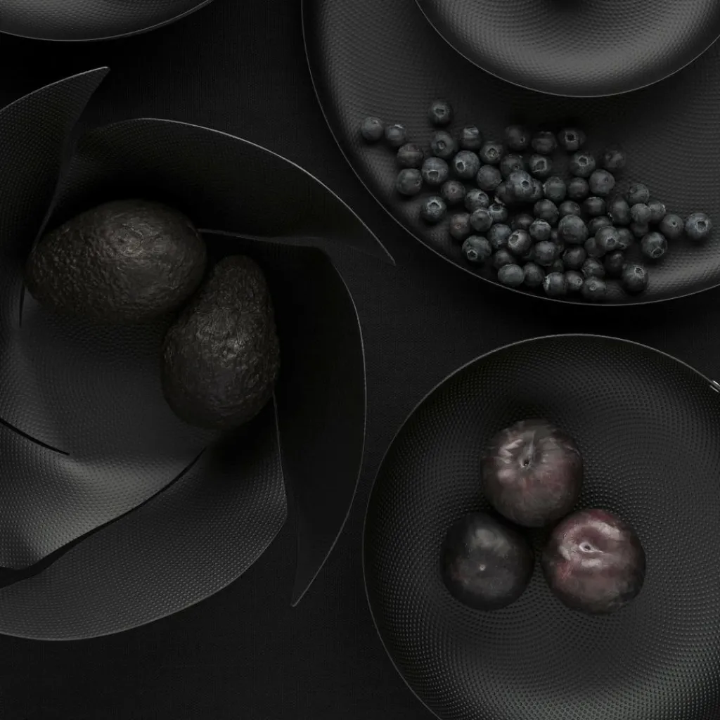 Gefertigt aus robustem Stahl, ist die JM17 T Schale rund Ø 24cm mit einer epoxidharzlackierten Oberfläche versehen, die in einem tiefen Schwarz gehalten ist. Das Material erhält durch ein feines Reliefdekor und eine granulierte Struktur eine subtile Textur, die das Licht auf interessante Weise bricht und dem Objekt Tiefe verleiht – ohne die minimalistische Formensprache zu durchbrechen. Die Schale wirkt dadurch hochwertig und modern, aber nie aufdringlich. Mit einer Höhe von 6 cm und einem Durchmesser von 24 cm bietet sie ein angenehmes Volumen, ohne wuchtig zu erscheinen. Ihre sanft ansteigenden Wände und die rundumlaufende, dezente Kante machen sie sowohl funktional als auch ästhetisch ansprechend. Ob auf dem Esstisch, im Küchenregal oder auf einem Sideboard – diese Schale fügt sich mühelos in verschiedenste Einrichtungsstile ein und ist vielseitig einsetzbar: als Servierschale für Snacks, als Obstschale oder als puristisches Deko-Element.