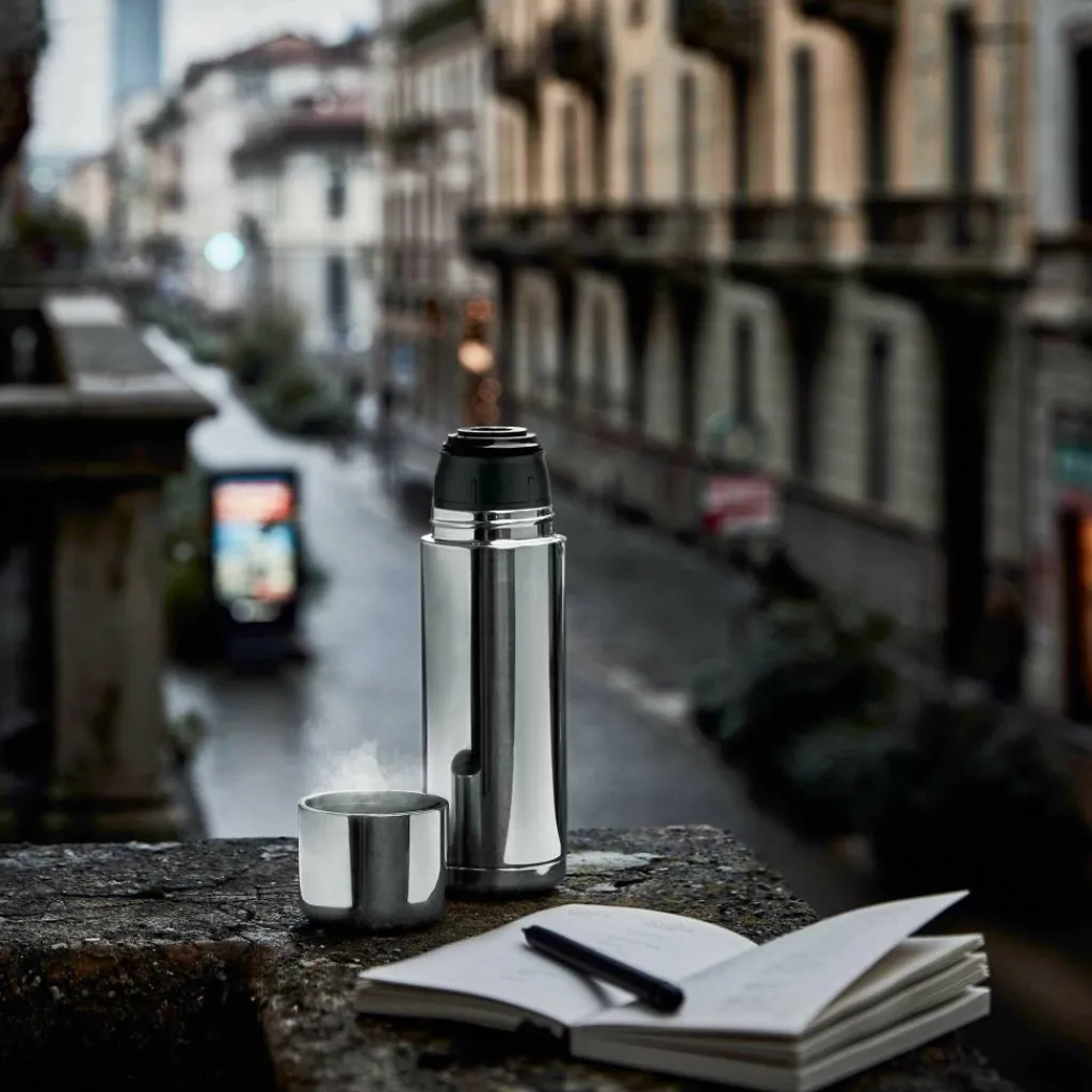 Die anmutige Nomu Thermoskanne wurde von dem japanischen Designer Naoto Fukasawa für den Hersteller Alessi entworfen. Das bewusst schlicht gehaltene Designerstück überzeugt durch seine gerade Linienführung und seine Auswahl hochwertiger Materialien. Die Verwendung von Edelstahl, der glänzend poliert wurde, verleiht der Thermoskanne ein besonders edles Aussehen. Die Nomu Thermoskanne mit einer Höhe von 20 cm und einem Durchmesser von 6,4 cm erweist sich als idealer Begleiter an Ihrem Arbeitsplatz und in der Freizeit bei einem Picknick am Meer oder im Grünen. Mit einem Fassungsvermögen von ungefähr 0,3 Litern eignet sie sich insbesondere für das Mitnehmen heißer Getränke wie Tee oder Kaffee.