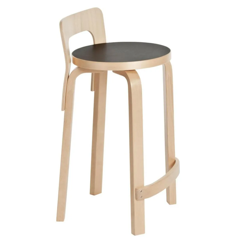 Der bequeme K65 Barstuhl Gestell klar lackiert wurde von dem Designer Alvar Aalto für die Marke Artek entworfen. Der finnische Architekt und Möbeldesigner gilt als Vater des Modernismus. Sein unverkennbarer Stil ist in seinen Möbel zu erkennen, die fast schon zu modern für das frühe 20. Jahrhundert wirken. Umso zeitgemäßer sind seine Designs heutzutage.