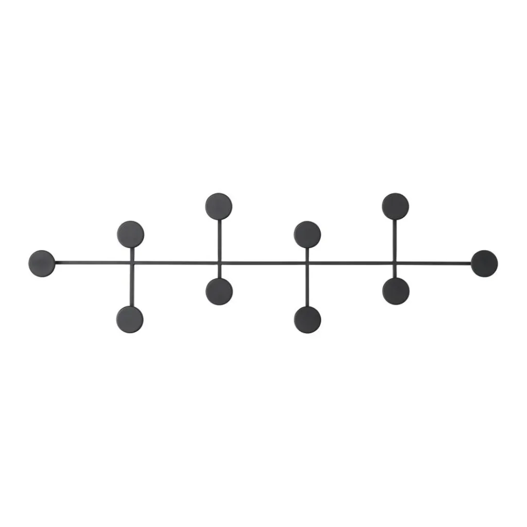 Mit ihrem puristischen Design fügt sich die Afteroom Wandgarderobe L sowohl als praktische Aufhängemöglichkeit im Flur als auch im Schlafzimmer ein. Es gibt die Garderobe ebenso in kleineren Varianten mit weniger Aufhängemöglichkeiten.