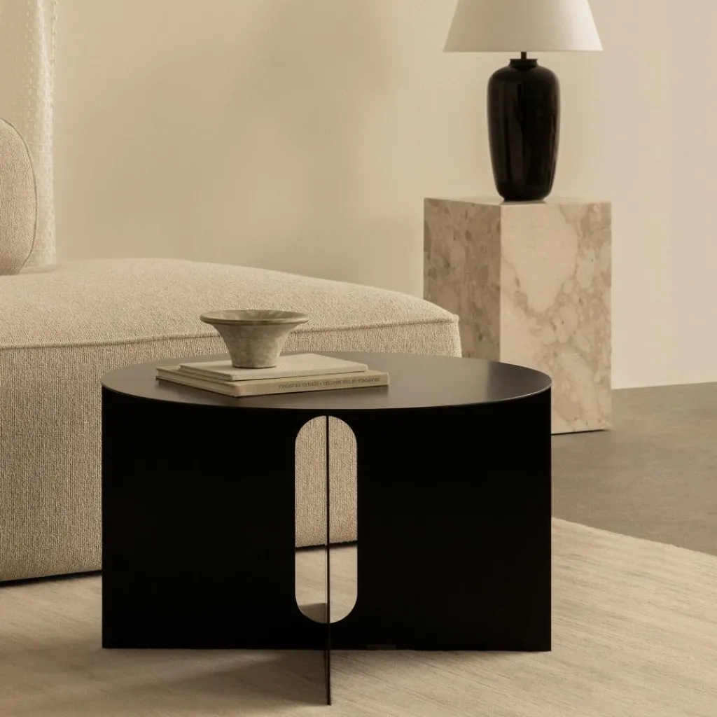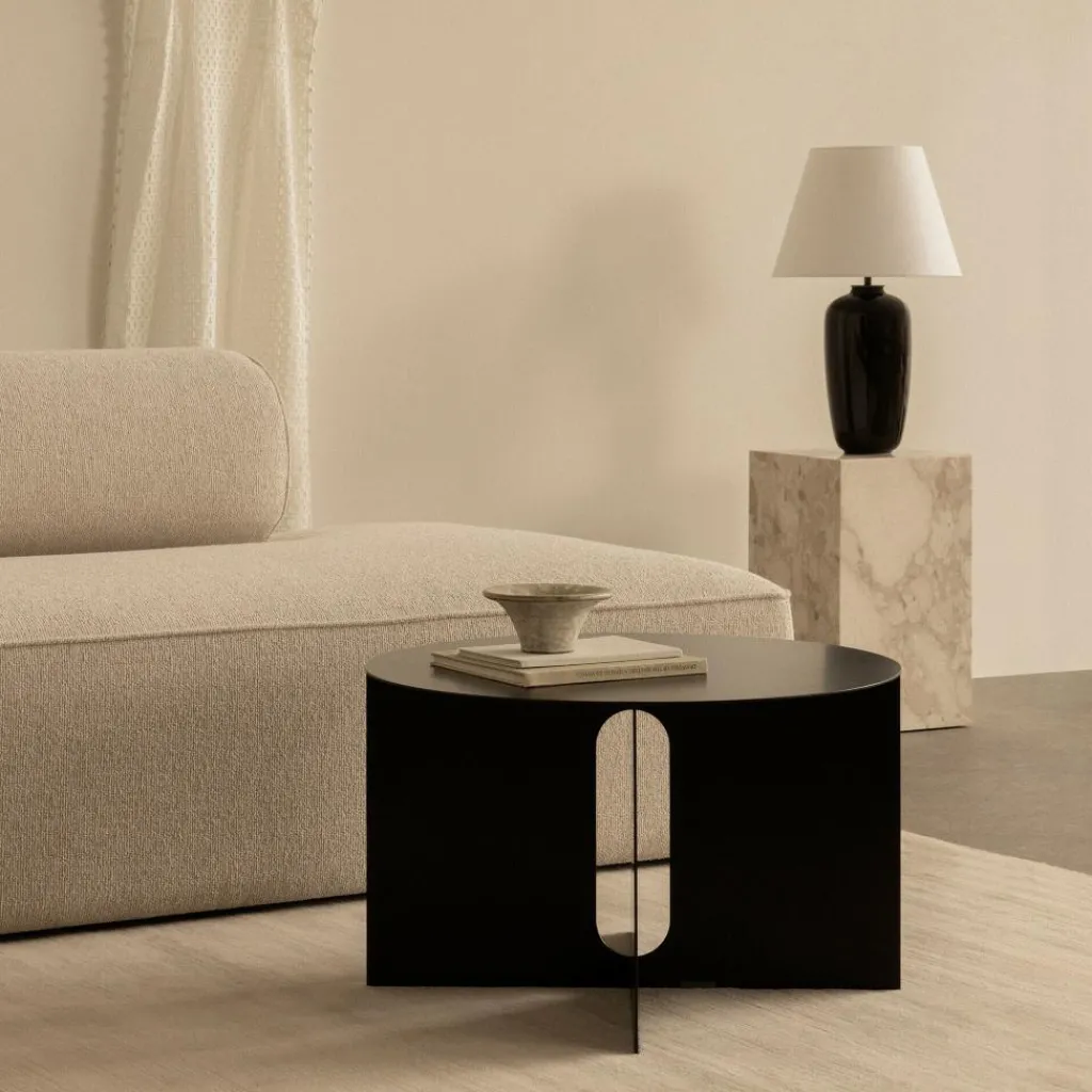 Der Androgyne Beistelltisch Stahl Ø 63 cm, entworfen von Danielle Siggerud für Audo, verbindet minimalistisches Design mit einer markanten Materialwahl. Als Teil der Androgyne-Kollektion spielt er mit Kontrasten und vereint weiche Formen mit der kühlen, stabilen Anmutung von Stahl.