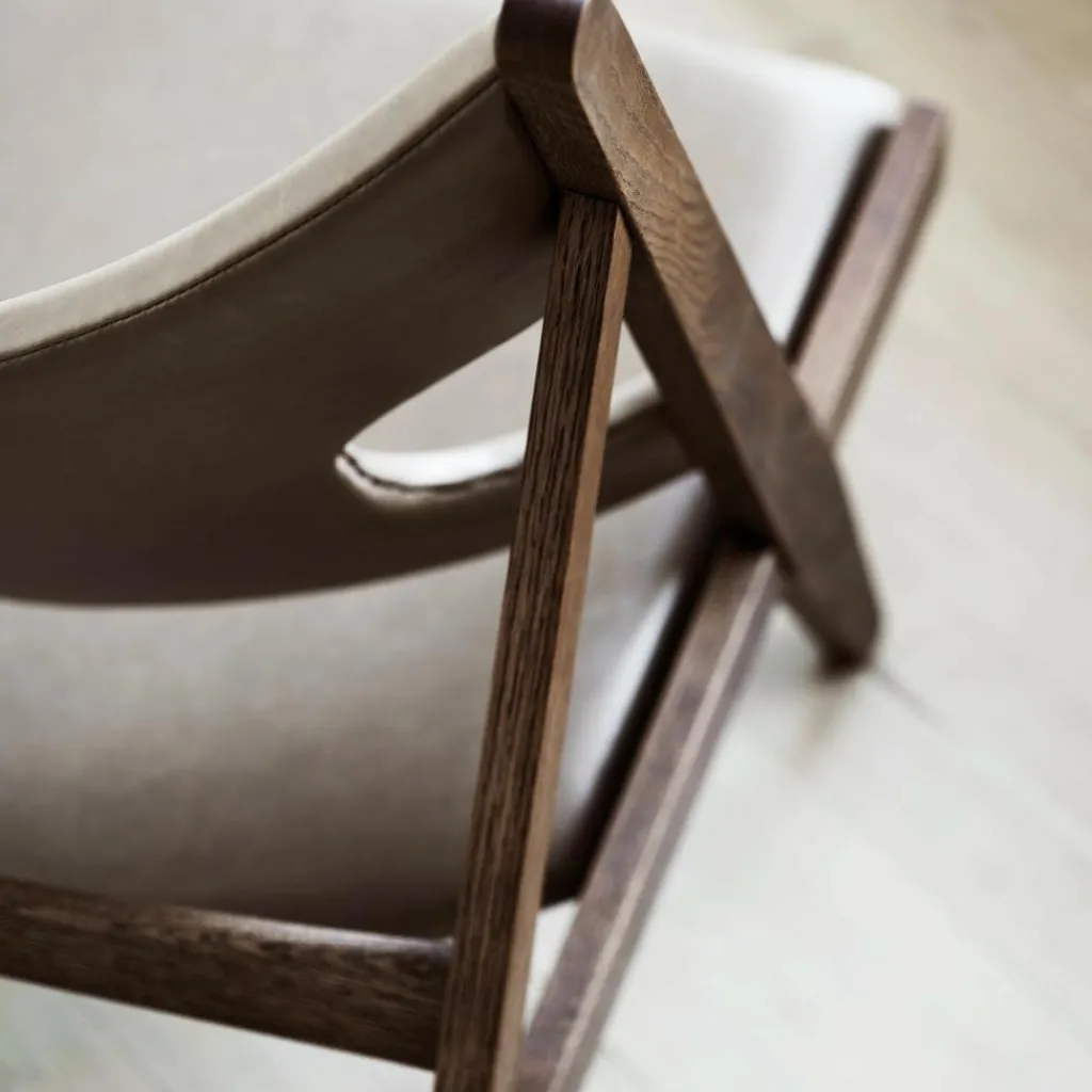 Den Rahmen des erlesenen Sessels bildet hochwertiges Holz aus massiver Eiche. Dazu passt die Sitzfläche aus elegantem Leder perfekt.