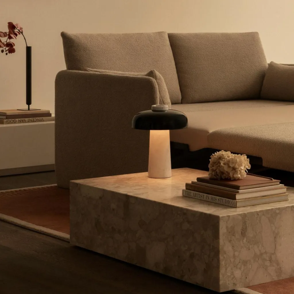Die Reverse LED Tischleuchte Marmor, entworfen von Aleksandar Lazic für Audo, vereint natürliche Materialien mit raffinierter Lichtgestaltung. Das Zusammenspiel aus hochwertigem Marmor und einem Leuchtenschirm aus Acrylglas ist formschön und besonders.