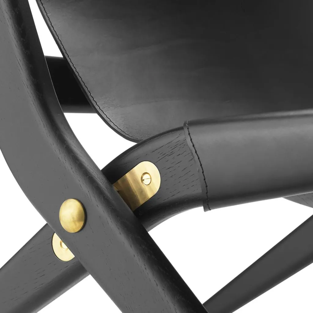 Als Lassen in den 1950er-Jahren den Saxe Sessel klappbar vorstellte, war es eine richtige Innovation, ein großes Lederstück als Sitz- und Rückenlehne für einen Stuhl zu verwenden. Das Naturmaterial ist lebendig und bedarf daher spezieller Beachtung: Ein für Kernleder geeignetes Pflegemittel hält es über lange Zeit geschmeidig. Die Sitzfläche sollte nicht für längere Zeit direktem Sonnenlicht ausgesetzt sein. Das Leder ist auf einen Rahmen aus Eichenholz gespannt. Dieses hat die Form eines klassischen Klappstuhls und bietet mit weit ausgestellten Beinen festen Stand. Mit Scharnieren aus Messing kann der Saxe Sessel klappbar zusammengelegt werden. Aus derselben Kollektion ist eine Wandhalterung zu haben: Damit lässt sich der Saxe Sessel klappbar platzsparend an der Wand aufbewahren.