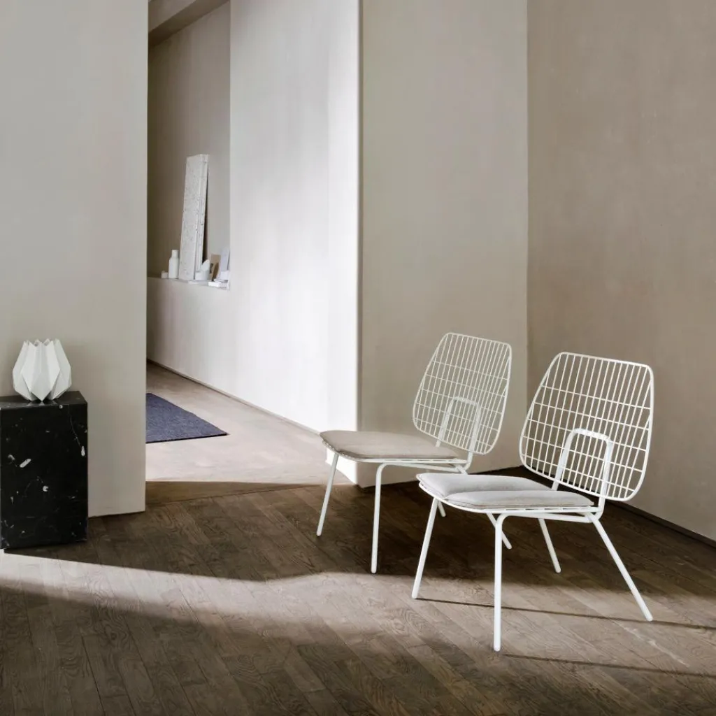 Der WM String Lounge Stuhl wurde von den Designern Wendy Legro und Maarten Collignon für den Hersteller Audo entworfen. Mit gemeinsamer schöpferischer Kraft und effizientem Materialeinsatz kreierten sie einen Stuhl, der dank seiner liebevollen Details nicht nur schön anzusehen ist, sondern auch einen bequemen Sitzplatz bietet.