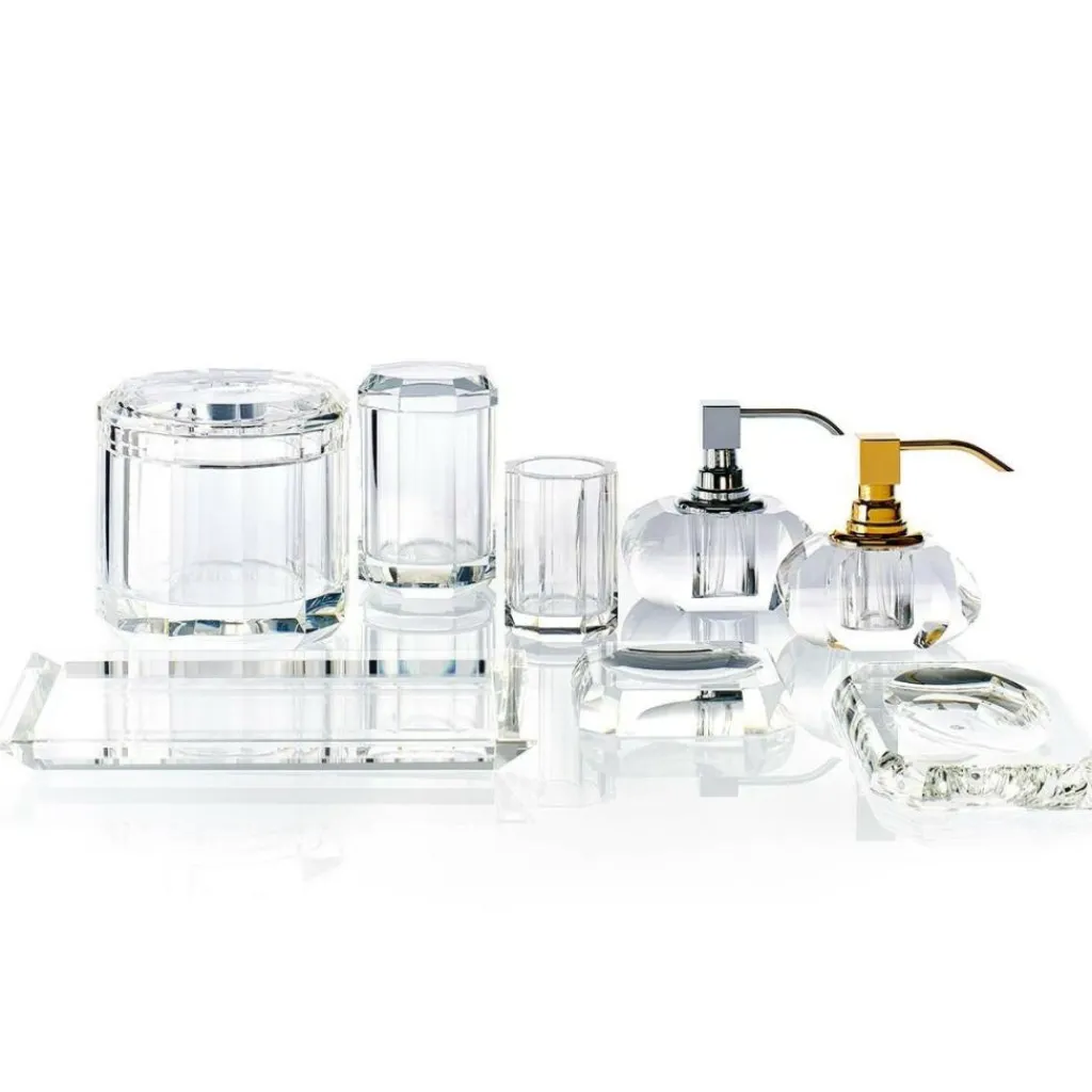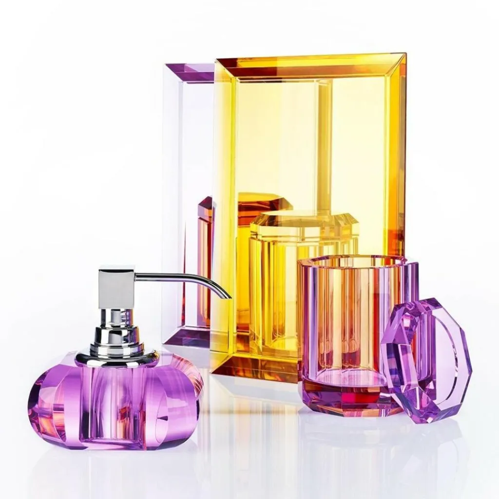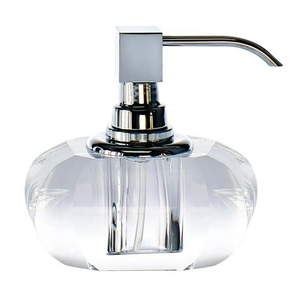 Der Kristall KR SSP Seifenspender wurde für den Hersteller Decor Walther entworfen. Seine skulpturale Formensprache ergibt gemeinsam mit dem verführerischen Glanz des Glases ein geradezu geheimnisvolles Design. Erhältlich in verschiedenen Farben – Grün, Violett, Bernstein, Blau, Pink und Kristallklar – ist der KR ssP KRISTALL Seifenspender ein wahrer Tausendsassa, der sich jedem Stil anpassen kann und dabei doch stets als Solist glänzt. Die an einen Diamanten erinnernde Form macht aus dem an sich funktionalen Badzubehör ein echtes Kleinod. Dabei vereint es die bei Decor Walther üblichen Design-Grundsätze: Form folgt Funktion – und dies kann nur durch die Verwendung von qualitativ hochwertigen Materialien perfektioniert werden. Hier sind es Metall und Glas, die ein Designstück von zeitlosem Wert ergeben.