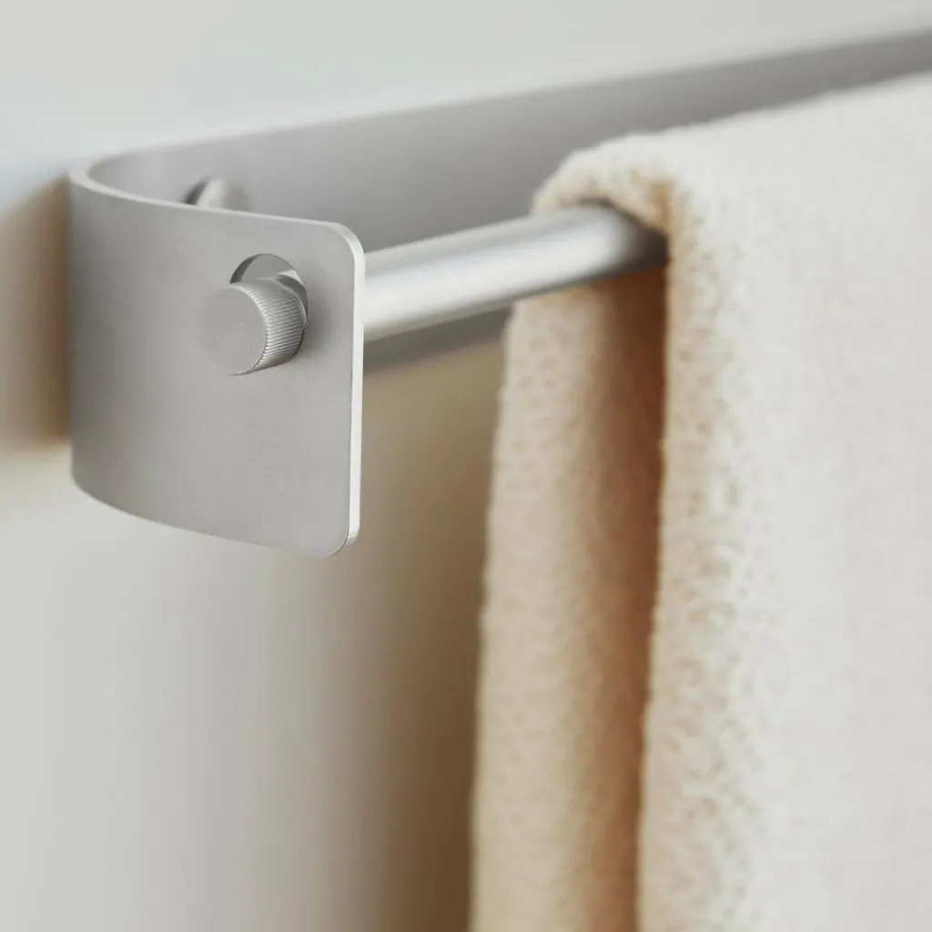 In der Breite misst der Arc Handtuchhalter einarmig 62cm bei einer Höhe von 4,5cm und einer Tiefe von 7cm. Das Gewicht beträgt 1,1kg. Die Arc-Serie mit Badaccessoires von Form & Refine umfasst des Weiteren einen zweiarmigen Handtuchhalter im identischen Design.