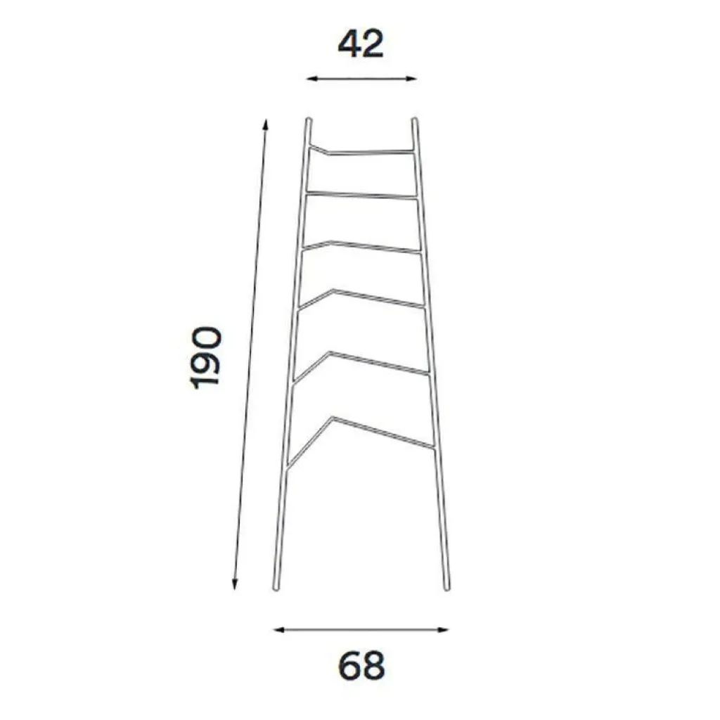 Die Nook Ablageleiter hat eine Breite von 68 cm und eine Höhe von 190 cm. Für Stabilität sorgt ihr Gewicht von 2,1 kg.