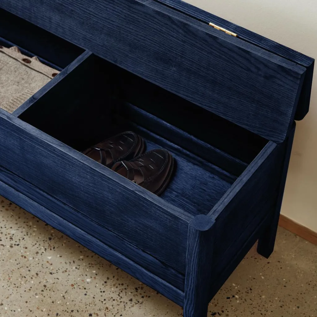 Die Special Edition A Line Truhenbank 111cm wurde vom Herman Studio für die Marke Form & Refine entworfen. Es handelt sich um eine Special Edition in einer Sonderfarbe von Form & Refine.