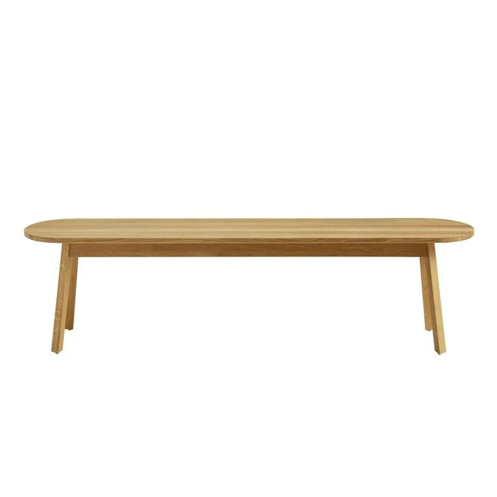 Das auffälligste Merkmal der Triangle Leg Bank 150x40cm sind die in sanften Rundungen auslaufenden Ecken. Sie geben der Sitzbank nicht nur eine sympathisch weiche Silhouette, sondern regen auch dazu an, einmal eine andere Sitzposition einzunehmen. Die Sitzfläche und das Untergestell mit seinen schräg nach außen laufenden Beinen bestehen aus massiver Eiche. Die Oberflächen sind ölbehandelt und dadurch sehr widerstandsfähig gegen Nässe und Verschmutzungen.