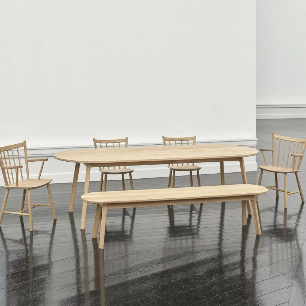 Seit seiner Gründung im Jahr 2002 überzeugt der dänische Design-Hersteller HAY mit klassisch-skandinavischem Design in einem neuen, dem Zeitgeist mit Augenmaß angepassten Auftritt. In Zusammenarbeit mit renommierten Designern bietet das Unternehmen ein breit aufgestelltes Lieferprogramm aus In- und Outdoor-Möbeln, eleganten Wohnaccessoires und funktionalem Küchenequipment. Mit der Triangle Leg Bank 150x40cm und dem dazu passenden Tisch bietet HAY Ihnen ein sachlich-elegantes Ensemble, das sich harmonisch in viele Einrichtungsstile, aber auch in Büros und Ihre Besprechungsräume integrieren lässt.