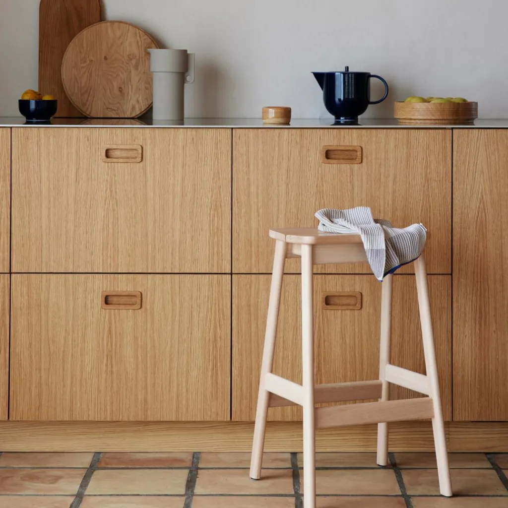 Der Angle Barhocker 65cm wurde vom Herman Studio für die Marke Form & Refine entworfen. Er ist Teil einer formschönen Möbelserie, die die Anforderungen an Funktionalität und Robustheit erfüllt. Die Bezeichnung des Angle-Barhockers leitet sich von dem Winkel ab, in dem die beiden Teile der Sitzfläche geneigt sind.