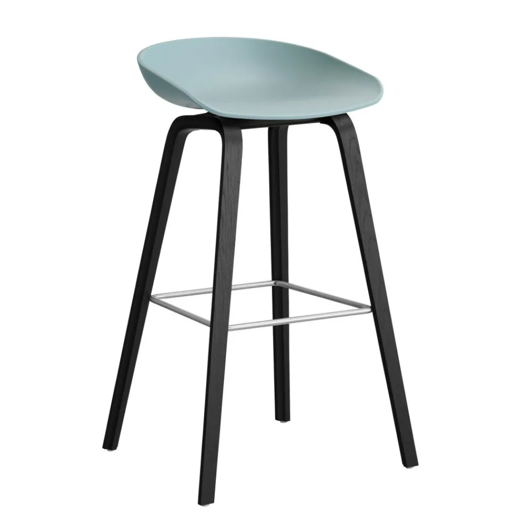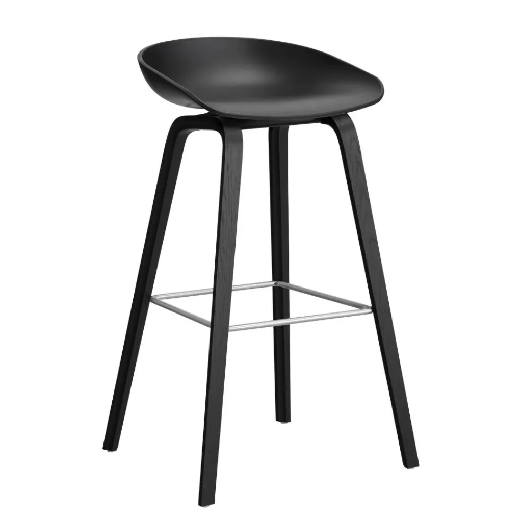 Der AAS 32 2.0 Barhocker hoch Eiche schwarz lackiert wurde von Hee Welling und Michele Cazzaniga für die Marke HAY entworfen. Der skandinavisch-puristische Entwurf für die Nutzung zu Hause und im Gastronomiebereich stammt aus dem Jahr 2012.