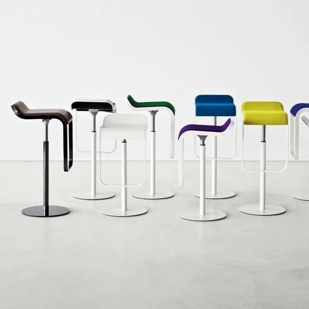 Der LEM S80 Barhocker Gestell Schwarz Sitzfläche Leder wurde von Shin Azumi und Tomoko Azumi für die Marke Lapalma entworfen. Der Name bezieht sich auf das Flugobjekt, das im Jahr 1969 die ersten Menschen auf den Mond brachte. Das Lunar Exkursion Module war minimalistisch eingerichtet um jeden Ballast zu vermeiden und auch der im Jahr 2000 vorgestellte Barhocker ist minimalistisch gestaltet.