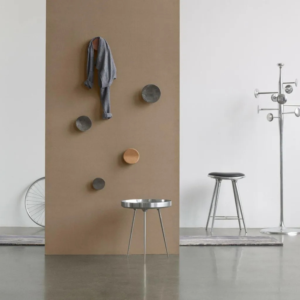 Der Barhocker Gestell Aluminium H 69cm wurde vom Designstudio Space Copenhagen für die Marke Mater entworfen. Gegenüber den übrigen Modellen aus der Hocker-Kollektion der dänischen Designer besticht der Barhocker Gestell Aluminium H 69cm durch sein Material.