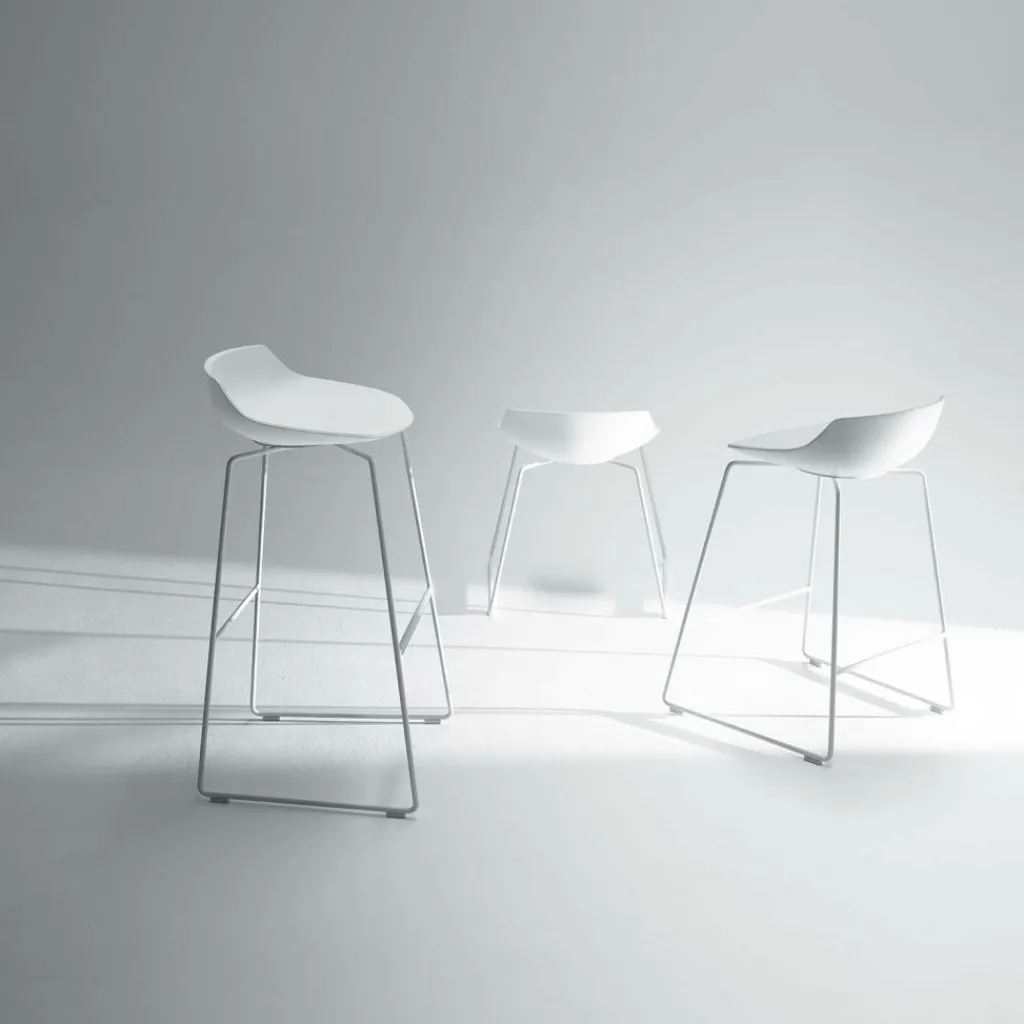 Das weiße Gestell aus stabilem Stahldraht folgt auf eine geradlinige Art und Weise klaren Formen, die auf alle unnötigen Details verzichten. Der sich in 65 cm Höhe befindliche weiße Sitz ist aus einem biegsamen und robusten Polyurethan gefertigt, das ganz natürlich den Linien des sitzenden Körpers folgt. Der 52 cm breite und 65 cm hohe Flow Barhocker Kufengestell 65cm integriert sich optimal in jede Küche und erfreut bereits beim Frühstück an der Küchentheke mit seinem minimalistischen und unaufdringlichen Design.