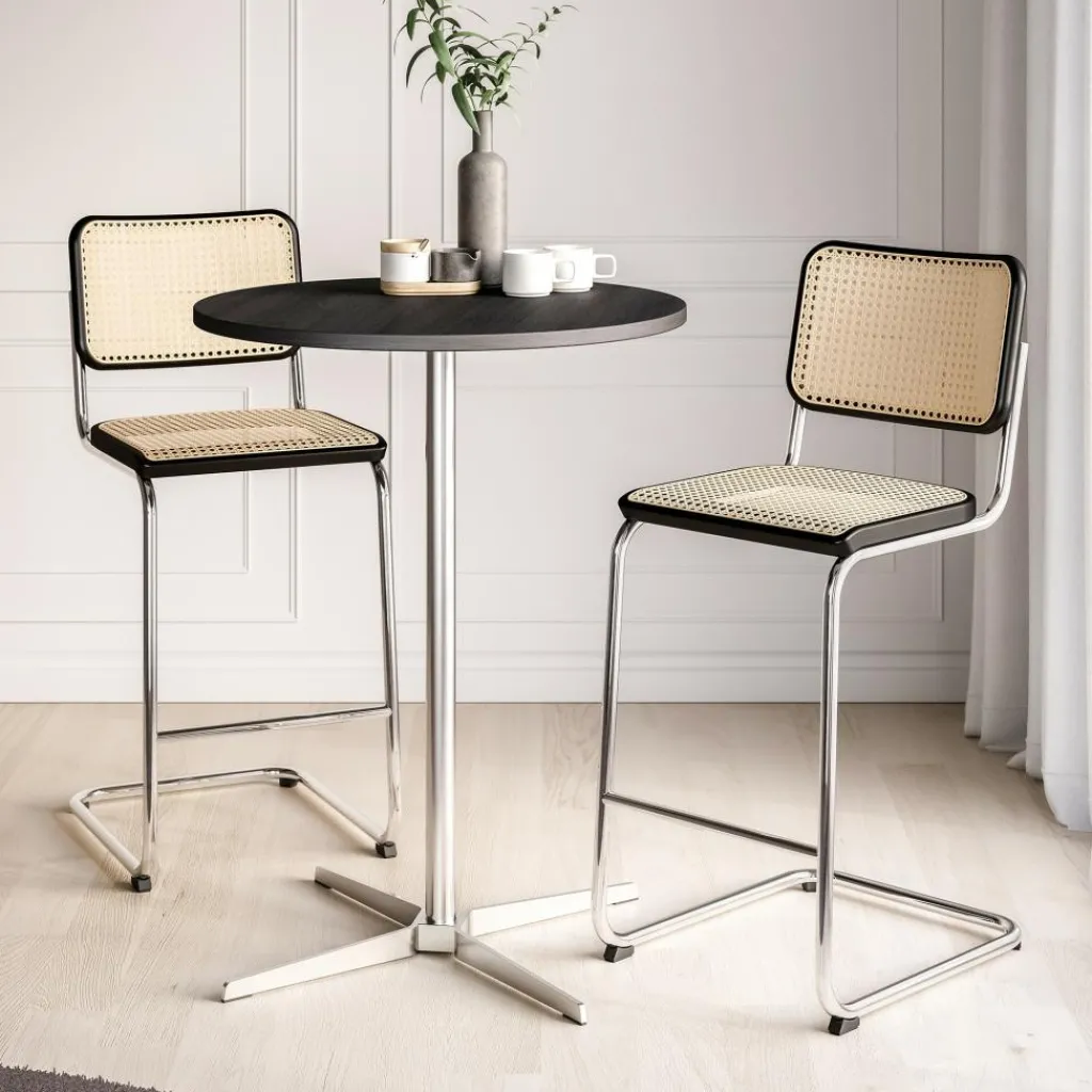 Der S 32 VH Barhocker mit Rohrgeflecht 112cm wurde von Marcel Breuer für die Marke Thonet entworfen. Einige der avantgardistischen Möbel aus einer auffallenden Stahlrohrkonstruktion wurden im Museum für Angewandte Kunst in Wien ausgestellt. Mit dem in den 1920er Jahren entworfenen Barhocker bewies Breuer, warum er als einer der Pioniere der Bauhaus-Schule in die Geschichte einging.