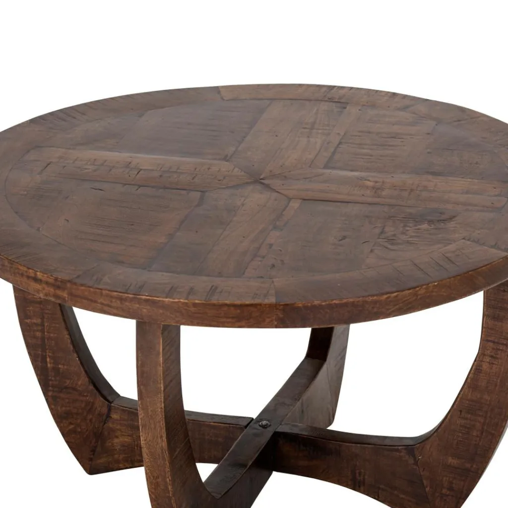 Das Gestell des Jassy Couchtischs besteht aus vier gebogenen Füßen, die sich am Boden kreuzen und die Tischplatte wie ein Korb tragen. Dieser Aufbau gewährt absolute Beinfreiheit. Der Jassy Couchtisch wird aus Mangoholz hergestellt. Der große Vorteil dieses Naturmaterials ist die lange Haltbarkeit. Noch dazu erweist sich die Oberfläche als pflegeleicht: Sie kann mit einem feuchten Tuch abgewischt werden. Die satte dunkle Farbe verdankt der Jassy Couchtisch einer Lackierung. Da die Oberfläche eine natürliche Maserung aufweist, ist jeder Tisch ein Unikat. Die runde Tischplatte ist wegen des eingearbeiteten Musters ein Blickfang. Der massive Jassy Couchtisch macht in jedem Umfeld eine gute Figur: Er passt in ein elegantes Büro, in die Hotellobby und in das private Wohnzimmer. Er wird gerne neben einer Sofalandschaft, einzeln stehenden Sofas oder einem Loungesessel platziert. Auf der Oberfläche sind Getränke, Zeitschriften und andere Gegenstände griffbereit.