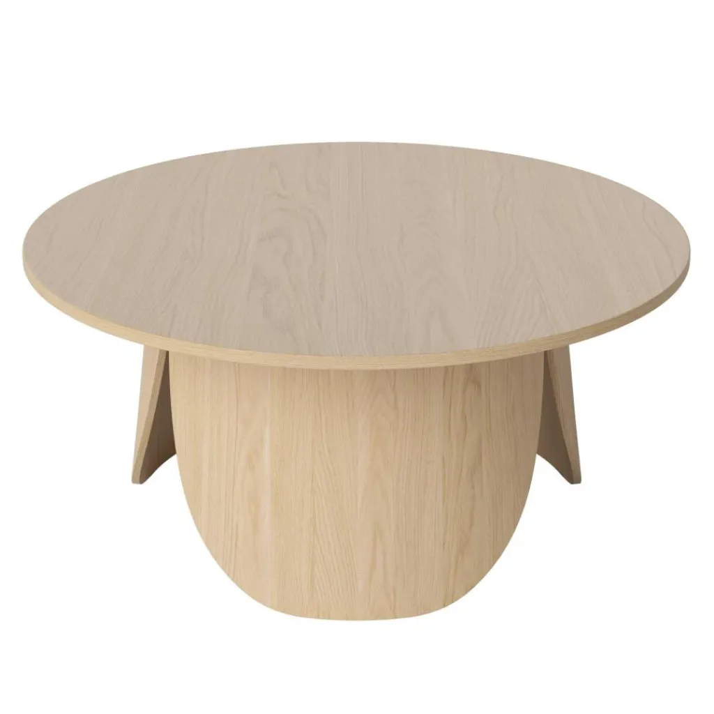Highlight des Peyote Couchtisch HxØ 35x80cm sind zweifellos die drei blattförmigen Tischbeine, die sich kreisförmig angeordnet unter der Tischplatte befinden. Die freien Bereiche zwischen den geformten Tischbeinen verleihen dem Möbel einen leichten und modernen Ausdruck. Die robuste Tischplatte scheint schwebend aufzuliegen, wodurch sowohl Stabilität als auch Leichtigkeit vermittelt wird. Ebenso hinsichtlich Wertigkeit setzt Bolia mit dem Couchtisch gewohnt hohe Maßstäbe: Das Holz stammt aus FSC®-zertifizierter Herstellung. Die gewählten Materialien Eichenfurnier, MDF und Sperrholz sorgen für eine hochwertige Haptik. Der Peyote Couchtisch HxØ 35x80cm fügt sich hervorragend in schlicht-elegante Wohnumgebungen ein, die ebenso Wert auf Gemütlichkeit und Wohlbehagen legen. Mit einem Durchmesser von 80 cm und einer Höhe von 35 cm ist der Couchtisch ideal für die Nutzung im Wohnzimmer. Die maximale Tragkraft liegt bei 20 kg. Die Beine des Tischs müssen angeschraubt werden, das hierfür nötige Werkzeug wird mitgeliefert. Entdecken Sie auch die beiden höheren Modelle der Bolia Peyote Kollektion, die besonders schön im Zusammenspiel mit dem Peyote Couchtisch HxØ 35x80cm funktionieren.