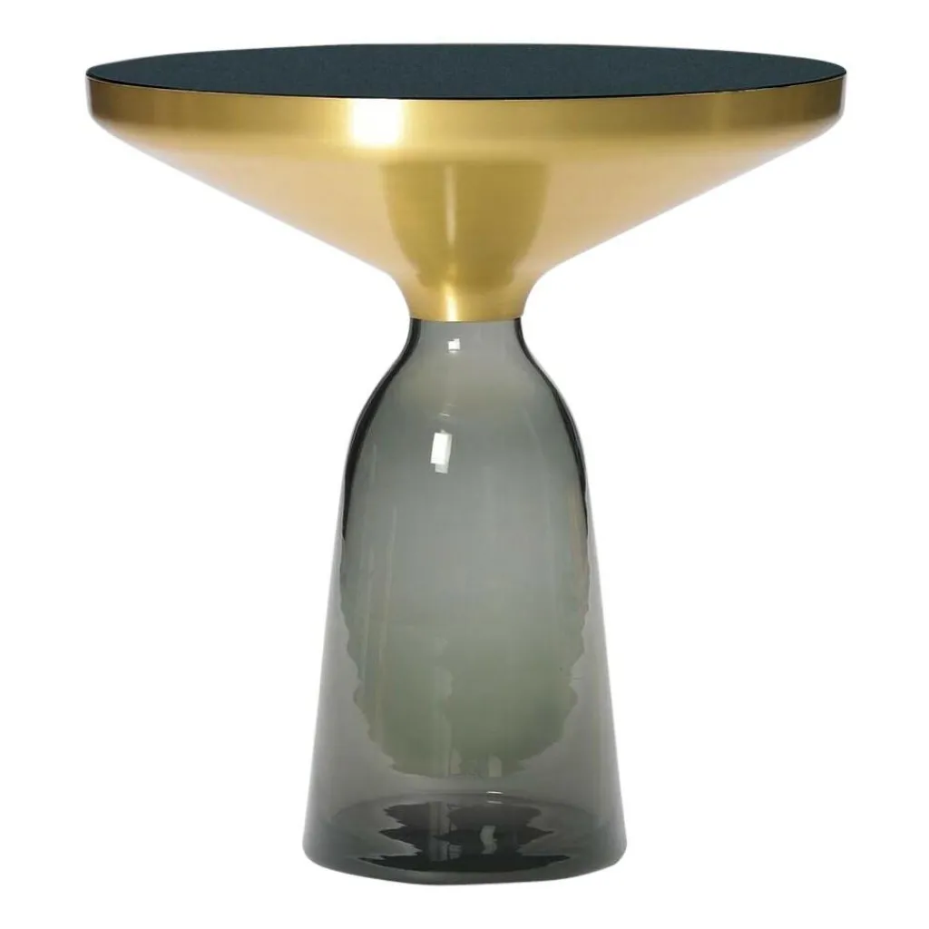 Mit dem Bell Side Table Beistelltisch Messing setzt sich der deutsche Designer über alle Konventionen hinweg: Er verwendet für den Sockel Glas, das als filigranes Material gilt. Erstaunlicherweise kann es den Metallaufsatz aus Messing und die Tischplatte aus lackiertem Kristallglas hervorragend tragen. Der Sockel erinnert mit seiner abgerundeten Form an eine Glocke. Er entsteht in liebevoller Handarbeit und wird mundgeblasen. Variationen in der Glasstärke und kleine Unregelmäßigkeiten sind typisch für diese altbewährte Handwerkskunst. Auf dem Bell Side Table Beistelltisch Messing scheint die massive Tischplatte zu schweben. Sowohl an ihrer glänzenden Oberfläche als auch im durchsichtigen Sockel reflektieren sich die Lichtstrahlen. Der Bell Side Table Beistelltisch Messing passt besonders gut zu moderner Einrichtung. Er ist nicht nur ein praktisches, kleines Möbelstück, sondern eine Stilikone.