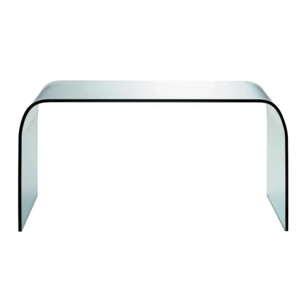 Beim Fontana Beistelltisch wurden die charakteristischen Merkmale eines Tisches auf ein Minimum beschränkt. Obwohl es das Modell bereits seit 1932 gibt, ist es nach wie vor aktuell. Traditionelle Handwerkskunst kommt zum Einsatz, um den Tisch in seine charakteristische Form zu bringen. Das Modell wird aus 15 mm starken Glas gefertigt. Es besteht aus einem Glasband, das an den Seiten gebogen ist und so zwei Beine formt. Der transparente Fontana Beistelltisch wird zum Blickfang: Scheint Licht oder die Sonne darauf, werden die Strahlen darin gebrochen. Man kann die Oberfläche mit einem milden Glasreiniger und einem weichen Tuch von Schmutz und Staub befreien. Auf dem Fontana Beistelltisch finden Speisen und Getränke, Zeitschriften und vieles mehr Platz.