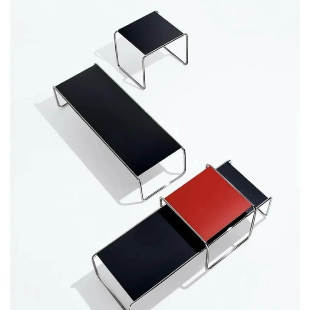 Der rechteckige Laccio Couchtisch wurde bereits 1924 von Marcel Breuer entworfen. Knoll International hat den Couchtisch, gefertigt nach der Originalvorlage von Marcel Breuer nun ins Sortiment mit aufgenommen.