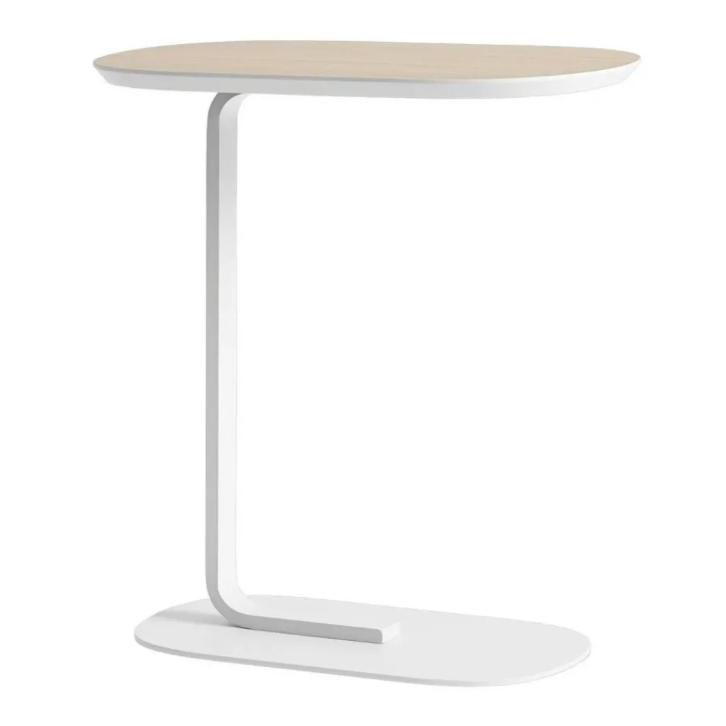 Einfacher kann das Design eines Tisches kaum sein: Der Relate Beistelltisch H 60,5cm besteht aus zwei ovalen Ebenen, die mit einem Bein verbunden sind. Eine Platte bildet den Standfuß und die zweite die Tischplatte. Das Verbindungsstück beschreibt oben und unten einen Bogen, sodass es eine C-Form bildet. Das komplette Gestell besteht aus pulverbeschichtetem Stahl. Die Tischplatte ist aus MDF hergestellt und an der Kante lackiert. Als Oberflächenmaterial kommt Laminat oder Linoleum zum Einsatz. Es gibt den Relate Beistelltisch H 60,5cm in verschiedenen Farben.
