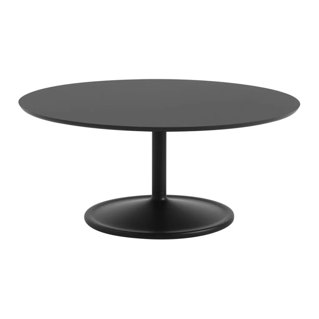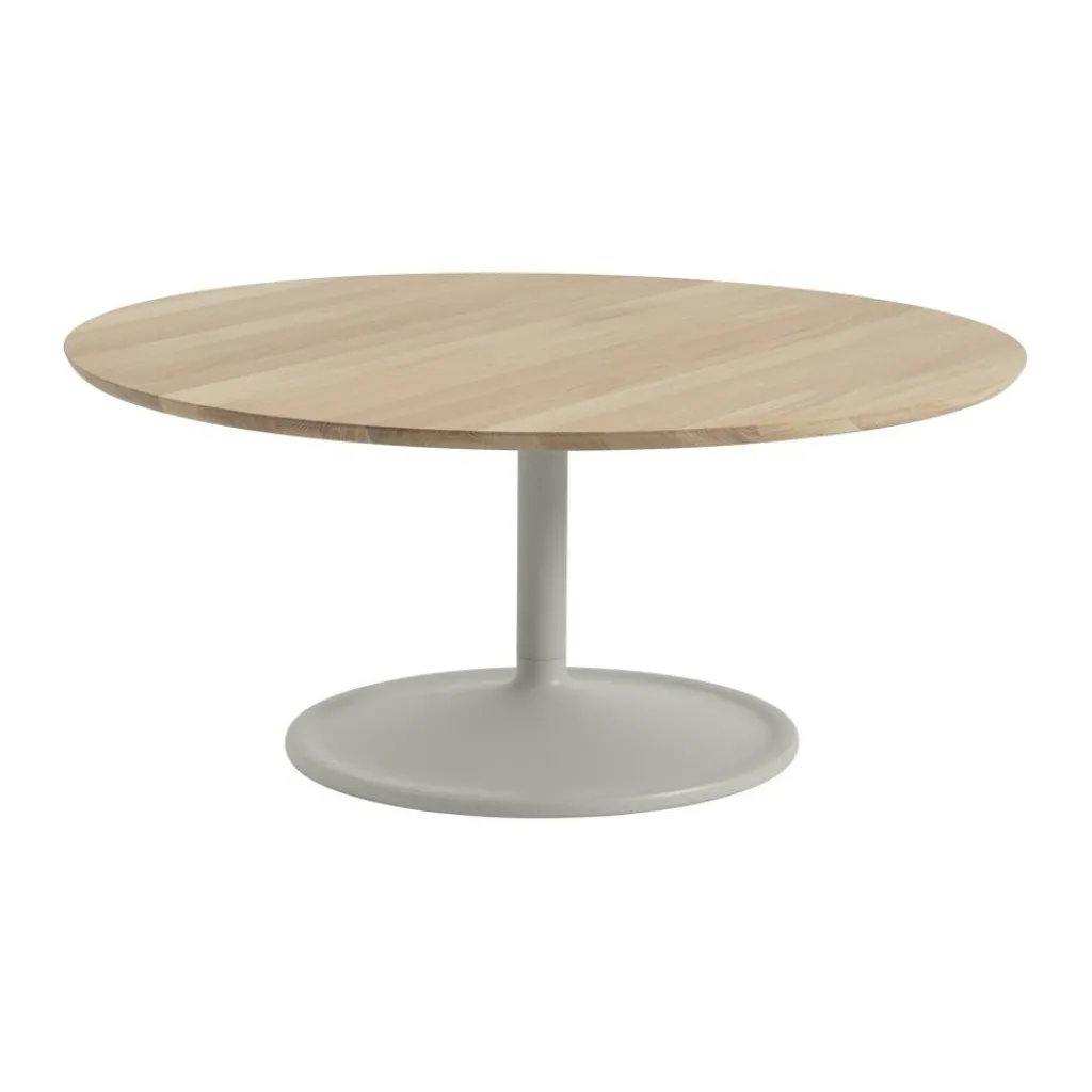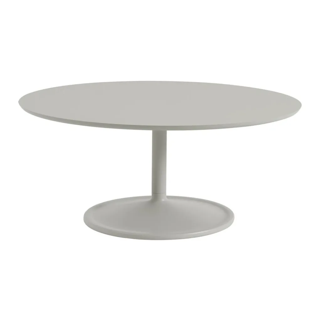 Sowohl im Wohnzimmer als auch vor einer Couch im Büro überzeugt der Soft-Couchtisch mit Gleitern ausreichend Ablagefläche. Bei einem Gewicht von 22kg hat das Modell eine Höhe von 42cm und einem Durchmesser von 95cm. Zur Soft-Kollektion des dänischen Designunternehmens Muuto gehören Beistelltische in unterschiedlichen Farben und Größen. Zur Pflege empfiehlt sich ein mildes Reinigungsmittel.