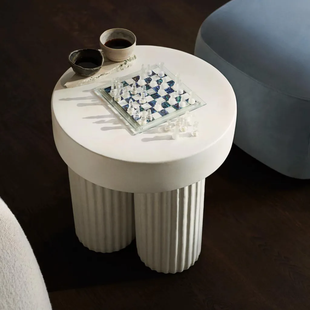 Der Gear Beistelltisch gehört zu einer Kollektion, die Beistelltische in verschiedenen Größen umfasst. Der Entwurf reduziert sich auf das Wesentliche, daher lässt sich das Modell auch ideal mit jedem Stil kombinieren. Der Gear Beistelltisch harmoniert sowohl mit moderner als auch mit traditioneller Einrichtung. Außerdem überzeugt er mit seiner Vielseitigkeit: Der Tisch macht im privaten Wohnzimmer oder im Wintergarten eine ebenso gute Figur wie in einem Hotel oder Wartezimmer. Gefertigt wird der außergewöhnliche Tisch aus Faserbeton. Da die Oberfläche von Hand bemalt wird, ist jedes Exemplar ein wahres Unikat. Drei aneinander befestigte Säulen bilden den gedrungenen Fuß. Darauf sitzt eine massive Platte aus demselben Material.