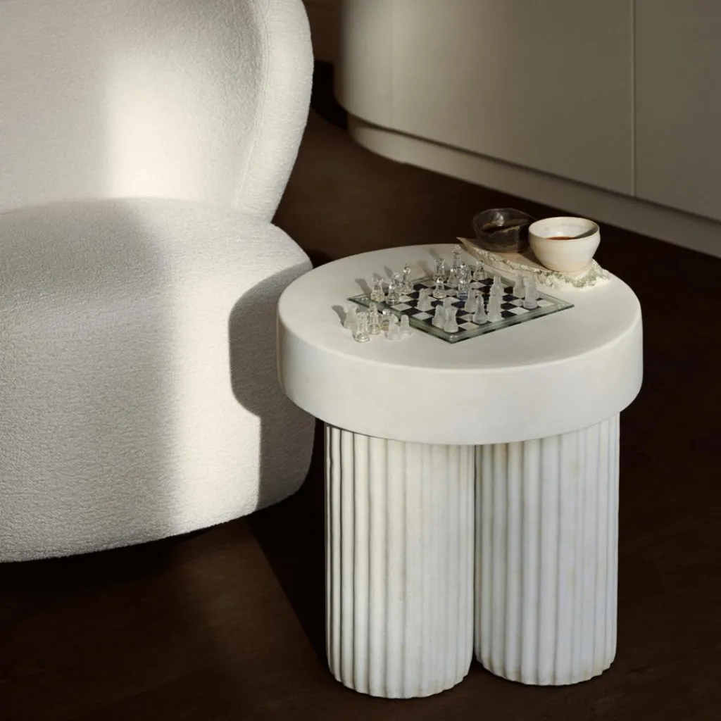 Der Gear Beistelltisch wurde von Kristian Sofus Hansen und Tommy Hyldahl für die Marke NORR 11 entworfen. Inspiration fanden die beiden Designer in griechischen Säulen. Ähnlich wie die Monumente und Säulen aus dem alten Griechenland und Rom weist auch der Fuß eine geriffelte Oberfläche auf.