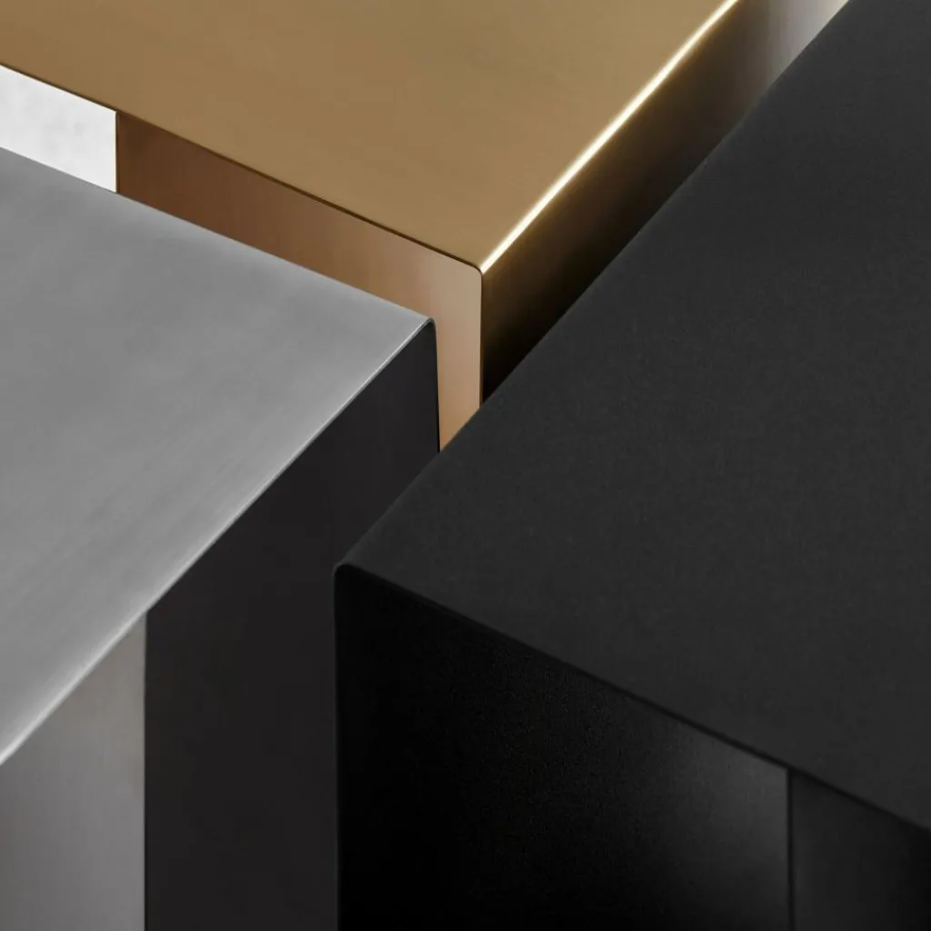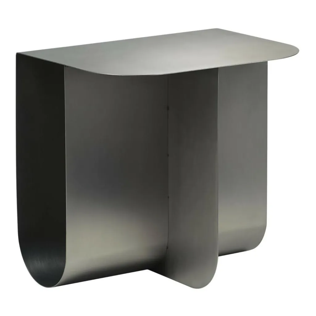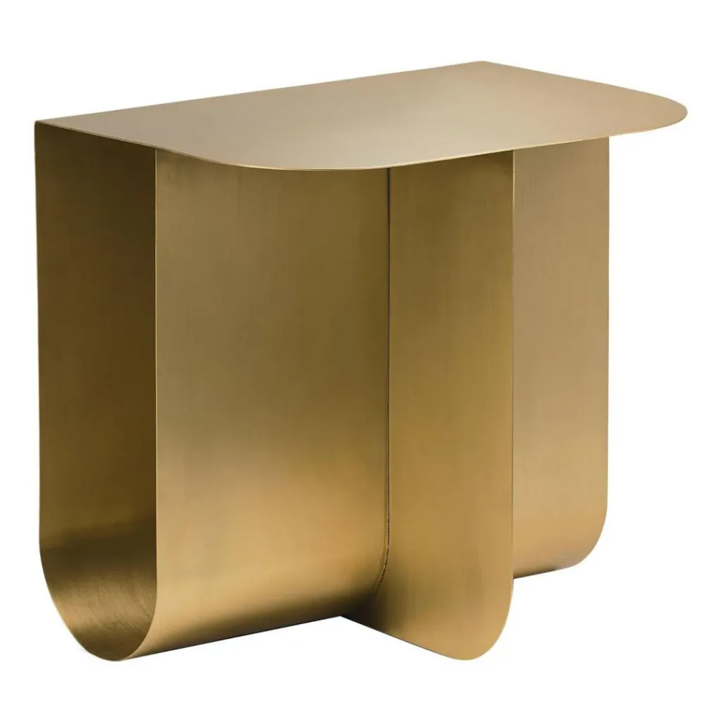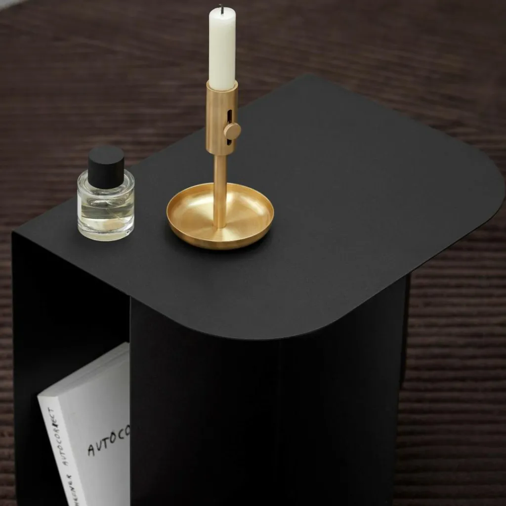Der Mass Beistelltisch ist nicht nur eine praktische Abstellfläche für Teller, Gläser und Zeitschriften, sondern auch ein Kunstobjekt. Bewusst kombiniert Magdassi runde und kantige Formen. Der Mass Beistelltisch besteht aus dünnem Stahlblech oder Messing: Der Standfuß beschreibt eine U-Form und geht an der äußeren Oberkante im rechten Winkel in die Tischplatte über. Sie ist an der anderen Seite sanft gerundet. Für zusätzlichen Halt sorgt eine Stahlblechplatte, die zur Stütze der Tischplatte dient. Durch den Hohlraum des Fußes fallen Sonnen- und Lichtstrahlen durch. Noch dazu dient er als Aufbewahrungsort für Zeitschriften und andere Utensilien. Den Mass Beistelltisch gibt es in verschiedenen Farben. So bildet der Mass Beistelltisch eine außergewöhnliche Kombination aus Aufbewahrungsmöbel und Tisch. Er passt zu nahezu jedem Sofa, wobei er besonders gut mit dem modernen Stil harmoniert.