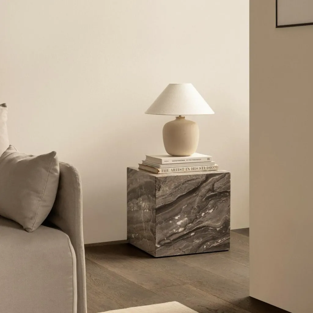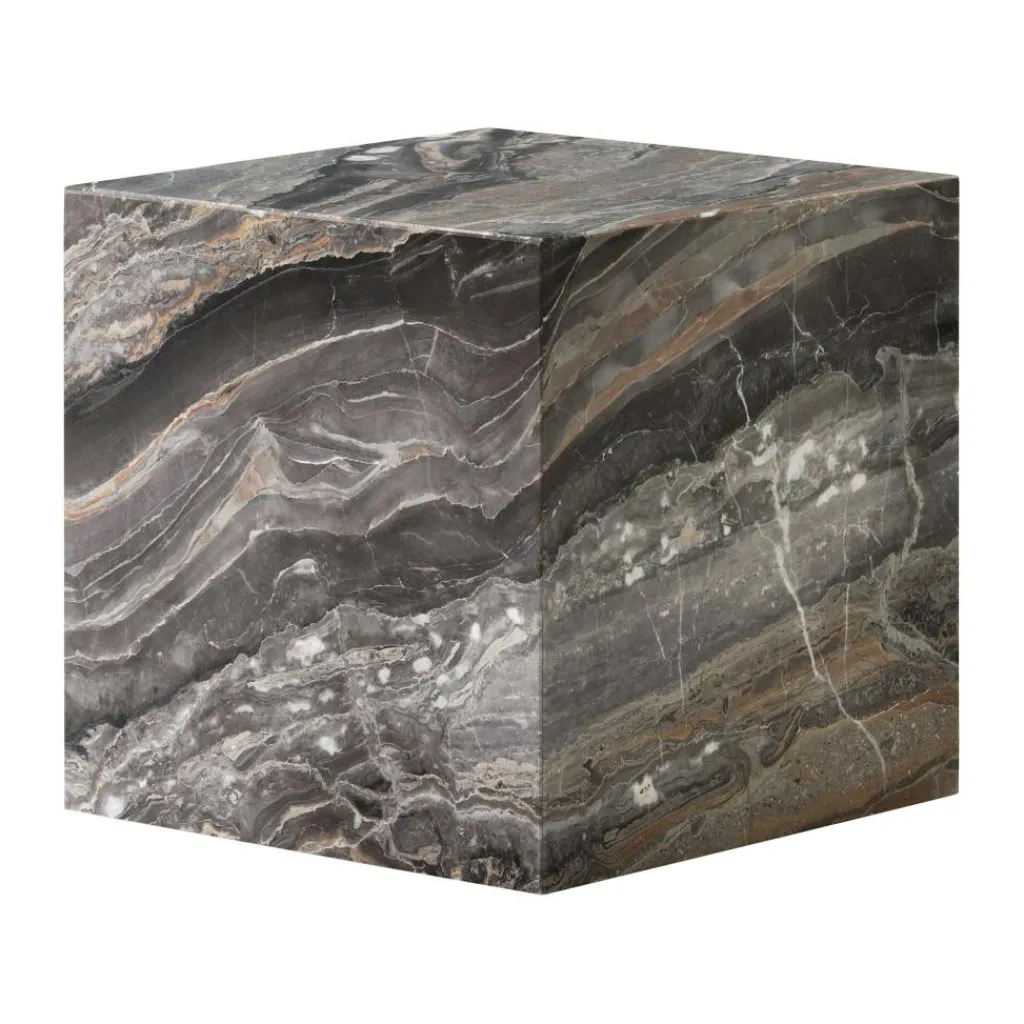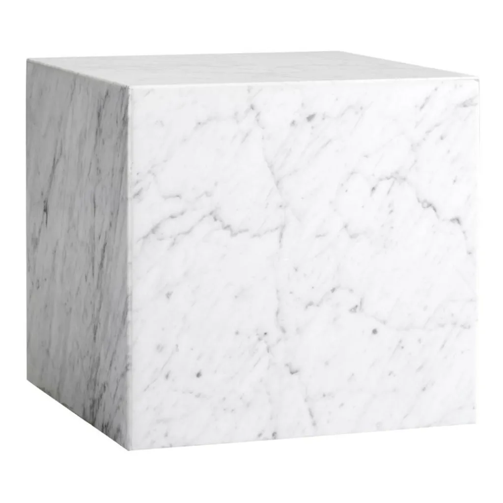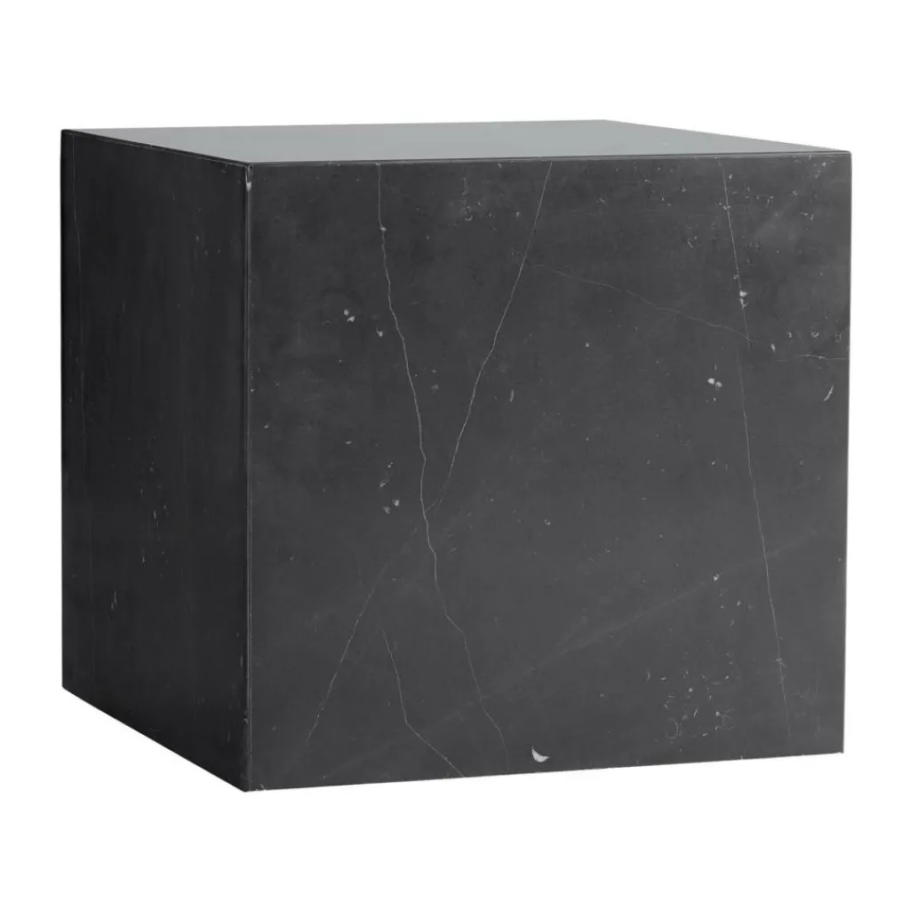 Aus der Plinth-Serie gibt es auch niedrige und hohe Beistelltische, die einen rechteckigen Grundriss haben. Beim Plinth Cubic Beistelltisch handelt es sich um einen Würfel. Zum Blickfang wird er, weil sich die Designer für ein altbewährtes Material entschieden haben, das bereits seit Jahrtausenden Eleganz verbreitet. Der Plinth Cubic Beistelltisch ist nämlich aus Marmor gefertigt. Es gibt den Couchtisch aus Marquina- oder Carrara-Marmor. Da jeder Plinth Cubic Beistelltisch eine einzigartige Maserung aufweist, wird jedes Exemplar zum Unikat. Das Modell wird im privaten Wohnzimmer zum Blickfang, wo es als mondäne Abstellfläche neben dem Sofa dient. Doch auch in der Hotellobby oder in einem eleganten Büro zieht es alle Blicke auf sich. Die Bodenplatte besteht aus MDF, an der Unterseite können Gleiter montiert werden. Sie dienen zur Schonung des Bodenbelags vor Kratzern.