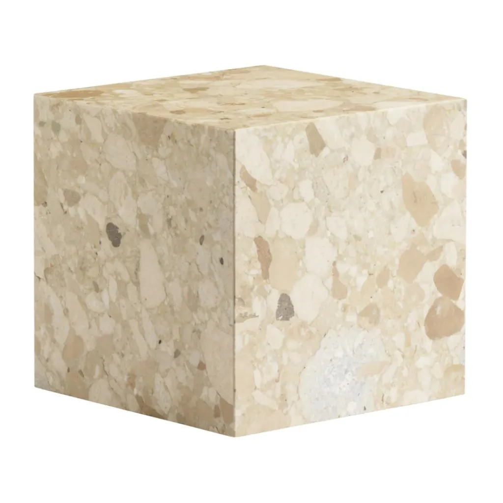 Der Plinth Cubic Beistelltisch ist jeweils 40 cm breit, tief und hoch. Der imposante Tisch wiegt 37,5 kg.