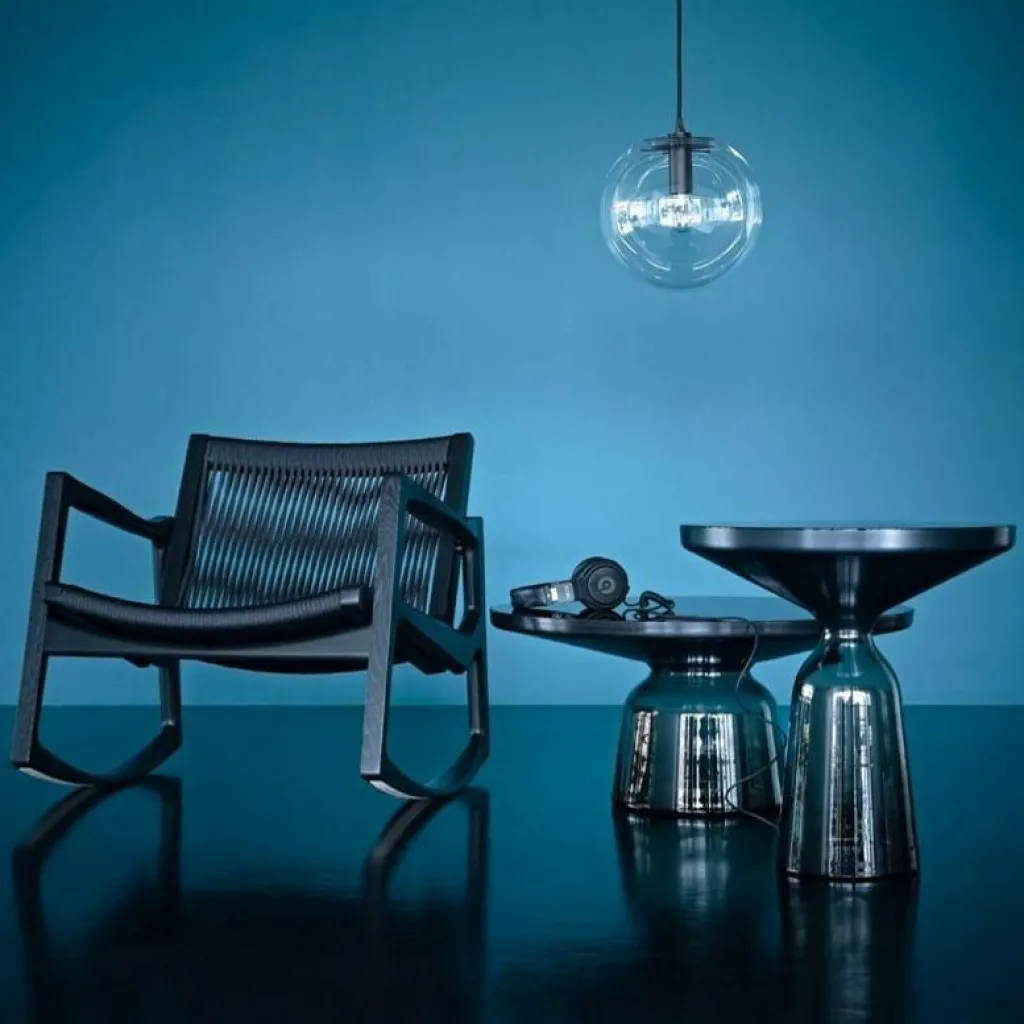 Die verschiedenen Größen und Formen der Bell Kollektion zu kombinieren, ist so, als würde der Raum Geschichten erzählen. In diesem Fall steht Bell bei einer Höhe von 54 cm und einem Durchmesser von 50 cm. Die im Glasblasverfahren entstehenden Unregelmäßigkeiten machen jedes Stück unverwechselbar. Genau das ist auch das Ansinnen von Designer Sebastian Herkner, der mit seinen Kreationen sensible Kunstwerke schafft, deren Charaktere ebenso einzigartig sind wie die ihrer Eigentümer. Lassen Sie sich inspirieren, welcher Bell Beistelltisch Stahl ihr Wohnbegleiter sein soll, Sie werden ihn erkennen.