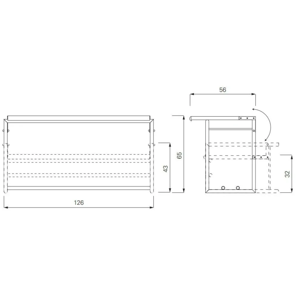 Sein modernes Design mit einem interessanten Materialmix zeichnet den Menton Beistelltisch höhenverstellbar aus. Ein Gestell aus verchromtem Stahlrohr mit drei horizontalen Mittelstreben trägt die Tischplatte aus Linoleum mit Kanten aus Buchenholz. Der Tisch misst 126cm in der Länge und 56cm Breite bei einem Gewicht von 25kg. Die Tischplatte ist mit Drehgelenken am Gestell befestigt und lässt sich als besonderer Clou mit einer einfachen Drehung verstellen. Dreht man das Gestell, wird aus dem Couchtisch im Wohnzimmer mit einem Handgriff ein praktischer Esstisch mit 65cm Höhe. Er kann auch in einer niedrigen Position mit 43cm Höhe arrangiert werden. Als besonderes Detail sind beide Seiten des Tisches in verschiedenfarbigem Linoleum gearbeitet, sodass sich je nach ausgewählter Höhe ein unterschiedliches Design ergibt.