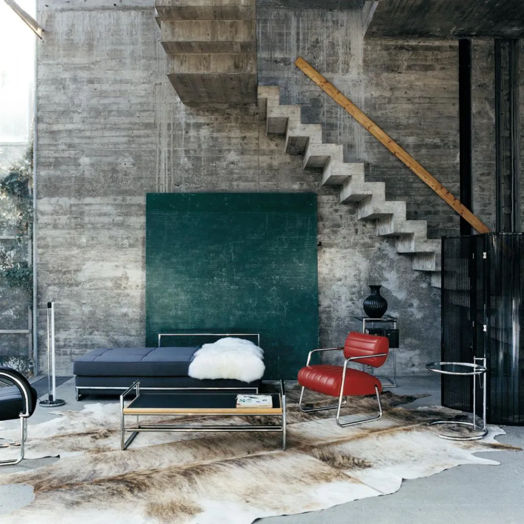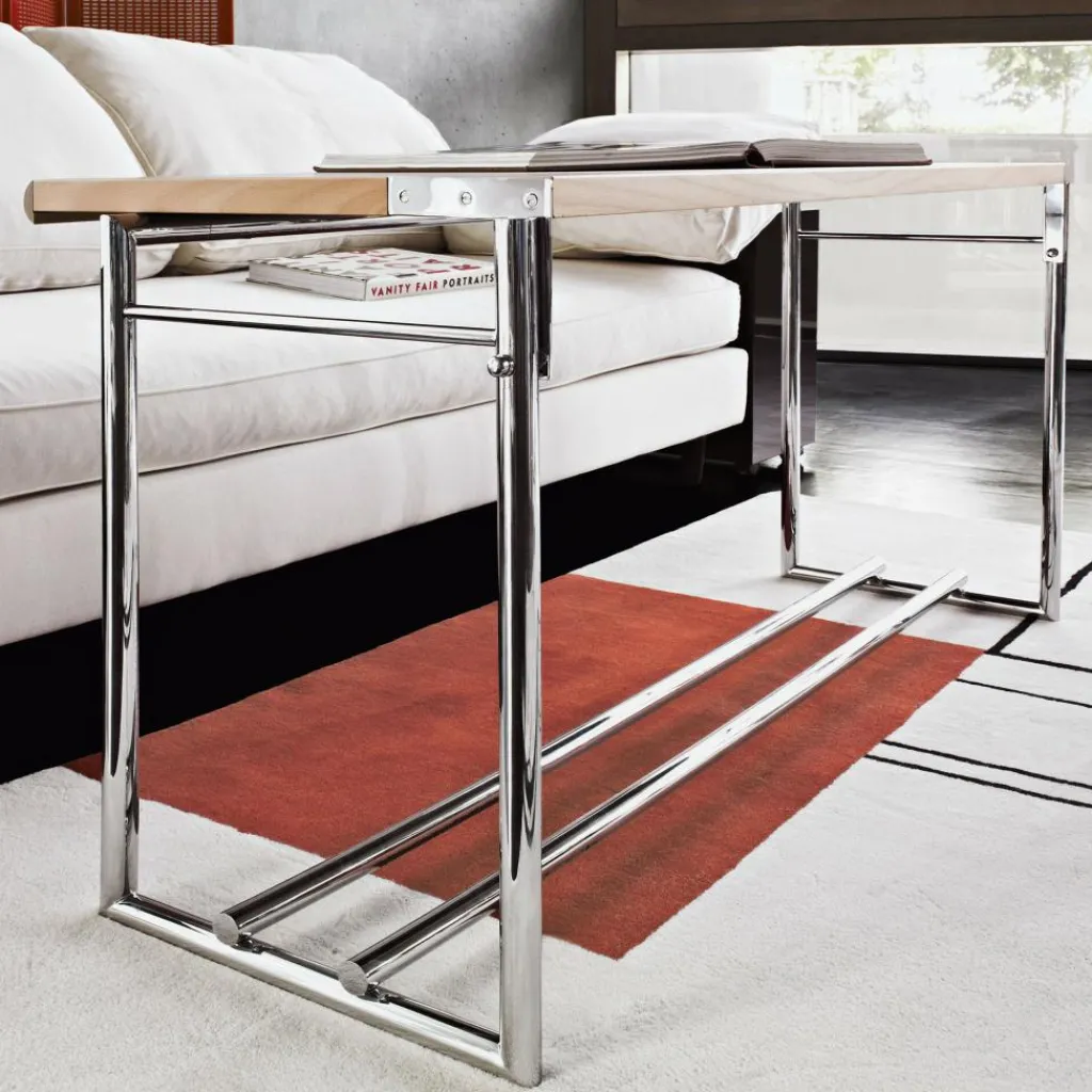 Der funktionale Tisch ist Teil der Kollektion Eileen Gray. Diese umfasst weitere Beistelltische, Stühle, Sessel, Teppiche und Leuchten im modernen Stil und passend zum Menton Beistelltisch höhenverstellbar.