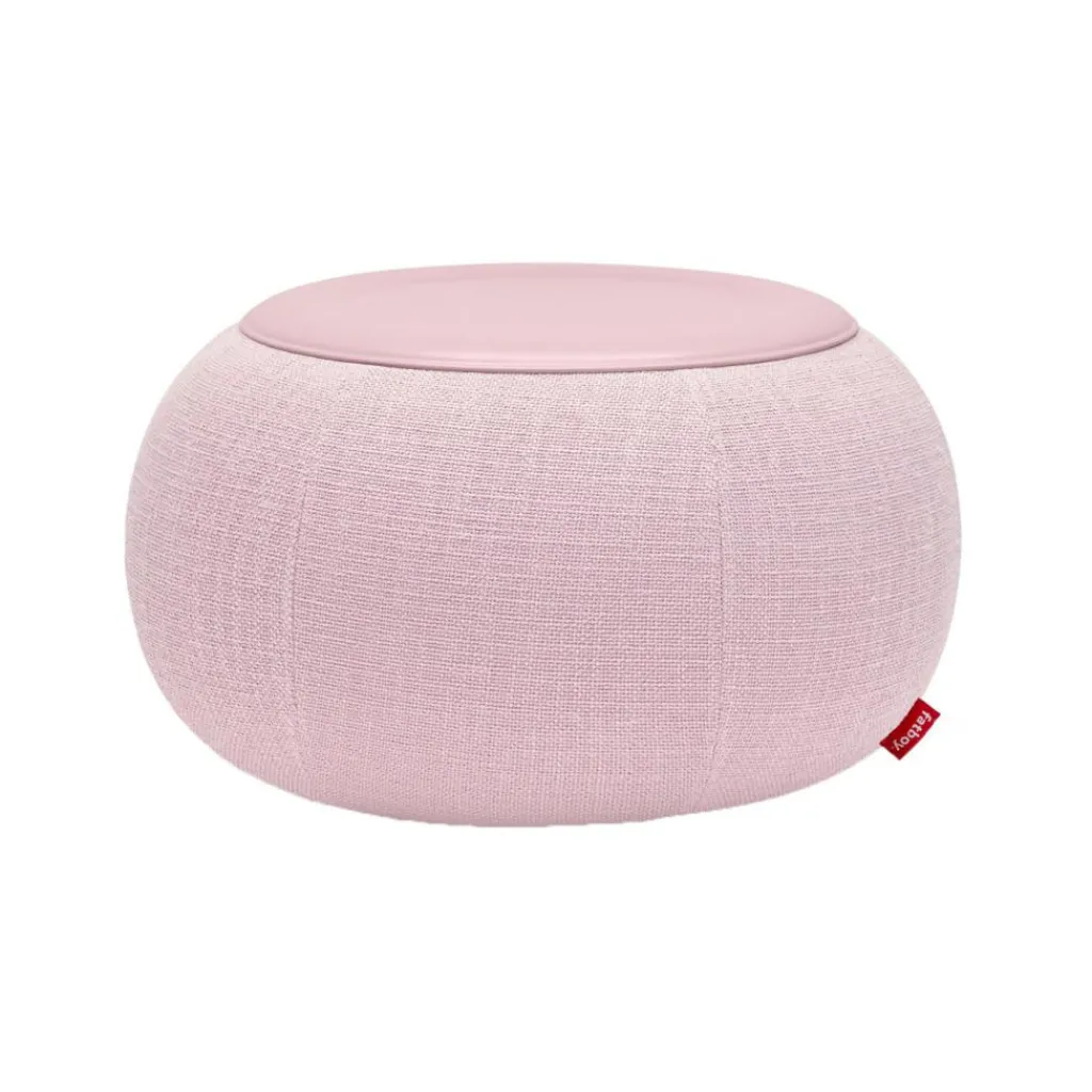 Verschiedene Farbvariationen von zeitlosen Nuancen bis hin zu knalligen Tönen sind beim Humpty Beistelltisch auswählbar. Der Tisch kommt in Form eines Donuts mit einem Durchmesser von 65cm bei einer Höhe von 43cm daher. Mit seinen 5,41kg Gewicht ist er jederzeit flexibel im Raum verschiebbar. Das Leichtgewicht ergibt sich durch den besonderen Aufbau des Tisches, denn dieser ist aufblasbar. Er besteht aus einer Basis aus Eco-Polyvinylchlorid und einem Bezug aus einem Materialmix mit 82% Polyester und 18% Acryl. Der Bezug ist waschbar und wird mit einem Riemen an der Unterseite festgezogen. Die runde Tischplatte besteht aus Stahl und verleiht dem flexibel einsetzbaren Tisch ein Plus an Stabilität. Er ist bis 30kg belastbar. Kleine Gummifüße schützen den Boden und geben Humpty eine leicht schwebende Optik.