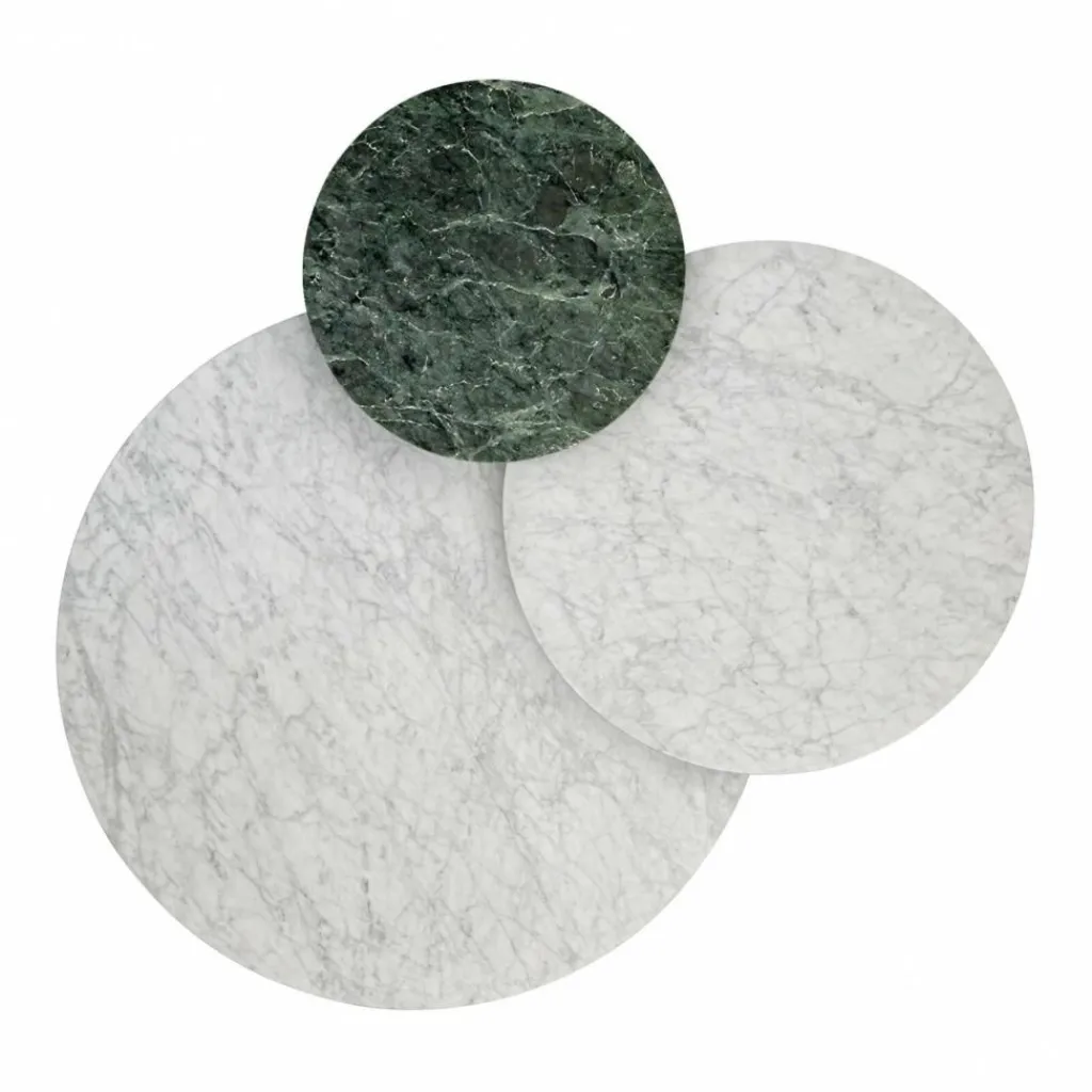 Der Name Grasshopper bezieht sich auf das kleine Insekt, das sechs Füße besitzt – wenn auch nur mit vier Füßen aus robustem Metall ausgestattet, ist das Grasshopper Couchtisch 3er Set genauso fragil, leicht und flexibel in seinem Einsatz. Den besonderen Akzent stellen die unterschiedlichen Farbgebungen der Tischflächen dar, die die Blicke gekonnt auf sich ziehen. Der Tisch besitzt drei verschieden große Oberflächen aus Marmor, die sich farblich voneinander unterscheiden. In seiner Gesamtheit besitzt der Beistelltisch die Breite von 152 cm und eine Tiefe von 134 cm. Damit benötigt dieses luxuriöse Möbelstück ausreichend Raum, um richtig zur Geltung zu kommen. Nicht zuletzt durch seine Höhe von 30 cm ist er prädestiniert dafür, das Zentrum einer ausladenden Couchlandschaft zu bilden.