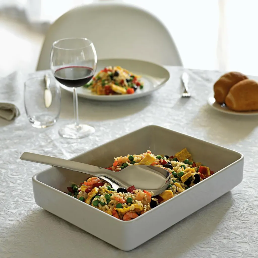 Der Servierlöffel besticht durch seine klare Formensprache. Die Bestecke Tibidabo sind aus Edelstahl gefertigt und glänzend poliert. Der Servierlöffel ist Teil der Besteckserie Tibidabo von Alessi, die außerdem eine Spaghettizange, Spaghettigabel, Servierbesteck sowie Salatbesteck umfasst.