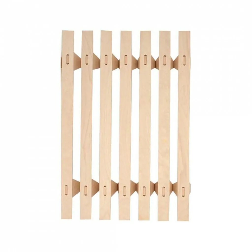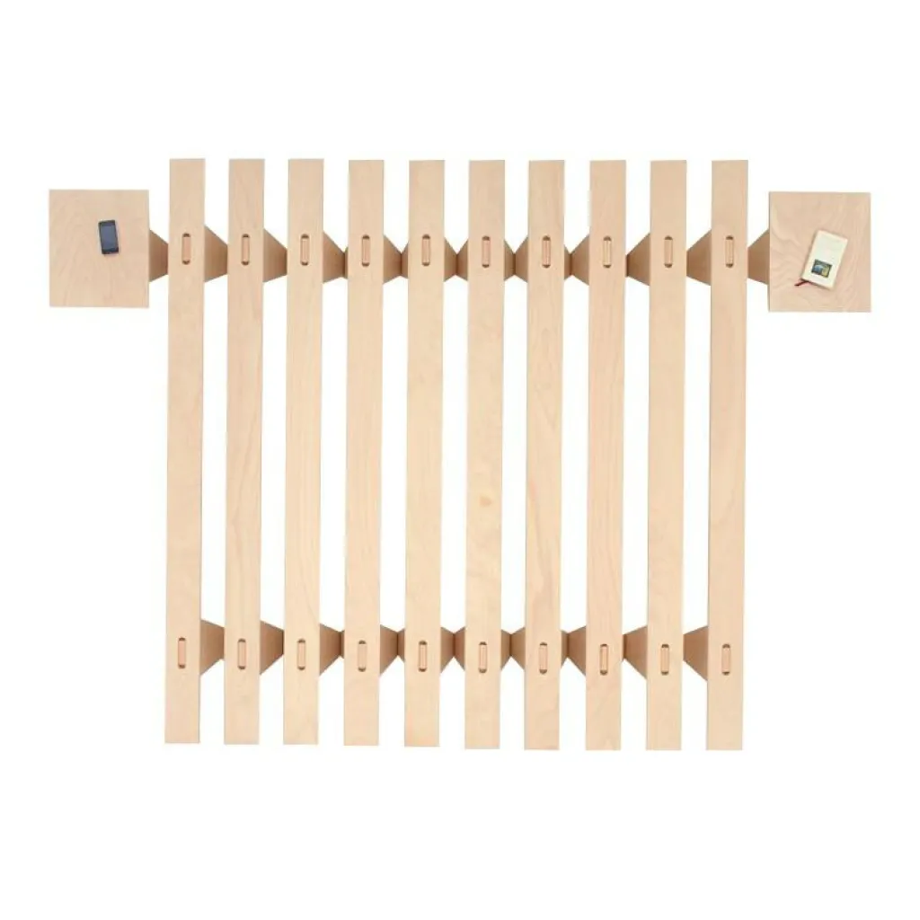 Mit Abmessungen von 200 x 20 cm und einer Höhe von 27 cm ist das Grundmodul des Bettes beliebig erweiterbar. Schon während seiner Ausbildung hatte Roy Schäfer die revolutionäre Idee, ein Bett zu bauen, dessen Breite dadurch variiert werden kann, dass man es wie eine Ziehharmonika auseinanderzieht. Das Tojo Lieg modulares Bett begeistert durch seine Variabilität. Für jeden Platzbedarf kann das passende Bett zusammengestellt werden. Das auf die reine Funktionalität begrenzte Gestell aus Buche Multiplex kann in die unterschiedlichsten Wohnumgebungen integriert werden und ist dennoch immer ein absoluter Eyecatcher, der zudem auch noch durch optimalen Schlafkomfort überzeugt. Die passenden Matratzen in verschiedenen Härtegraden und Nachttische aus Buchenholz machen das Tojo Lieg modulares Bett zu einem komfortablen Schlafmöbel.