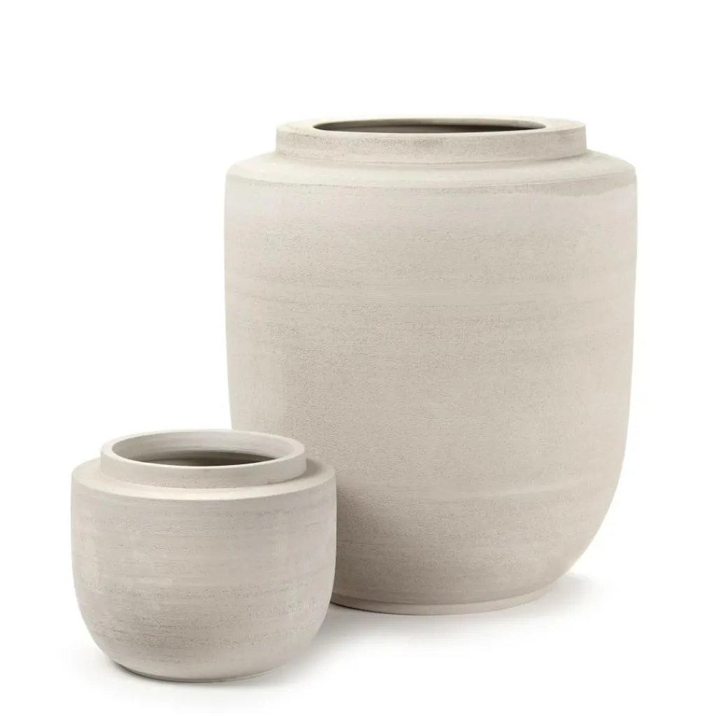 Der Volumes Übertopf XL wurde von Piet Boon für die Marke Serax entworfen. Er gehört zu einer Serie von funktionalen Keramik-Accessoires. Deren harmonische Formen sind von den Gemälden des italienischen Künstlers Giorgio Morandi inspiriert. Damit bestechen die Volumes-Modelle als kunstvolle Hingucker.