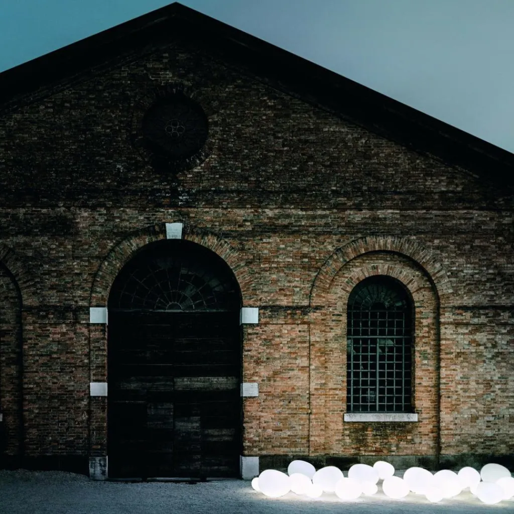 Die Gregg X-large Außenbodenleuchte wurde von Ludovica und Roberto Palomba für Foscarini entworfen.