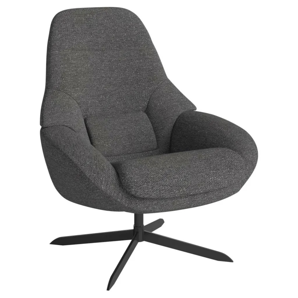 Der Saga Sessel Gestell schwarz wirkt wie eine Einladung zum Entspannen: Die ergonomische, schalenartige Form des Sessels fördert eine angenehme Sitzhaltung und lädt zum Verweilen ein. Mit einer zusätzlichen Polsterung im Sitzbereich und einer gepolsterten Lendenstütze bietet er hohen Komfort, sodass langes Sitzen zum Genuss wird. Ob beim Lesen eines guten Buches oder beim Hören von Musik – aus diesem frei stehenden Drehsessel möchte man gar nicht mehr aufstehen. Auch für eine kleine Auszeit mit geschlossenen Augen eignet sich der Sessel dank seiner körpernahen Form perfekt. Die Neigung des Sessels lässt sich durch eine unter dem Sitz angebrachte Schraubarretierung individuell anpassen. Mit einer Höhe von 101 cm, einer Tiefe von 106 cm und einer Breite von 77 cm bietet der Sessel großzügigen Komfort. Die Sitzhöhe beträgt angenehme 45 cm, und die Sitztiefe von 54,5 cm sorgt für zusätzlichen Sitzkomfort. Die Armlehnen, die sich in einer Höhe von 56 cm befinden, bieten optimale Unterstützung beim Halten eines Buches oder Tablets. Das maximale Gewicht des Nutzers darf 110 kg betragen. Der Saga Sessel Gestell schwarz ist mit einem 4-Stern-Fußgestell aus schwarz lackiertem Stahl ausgestattet, das mit dem Sessel einfach zusammengesteckt wird.