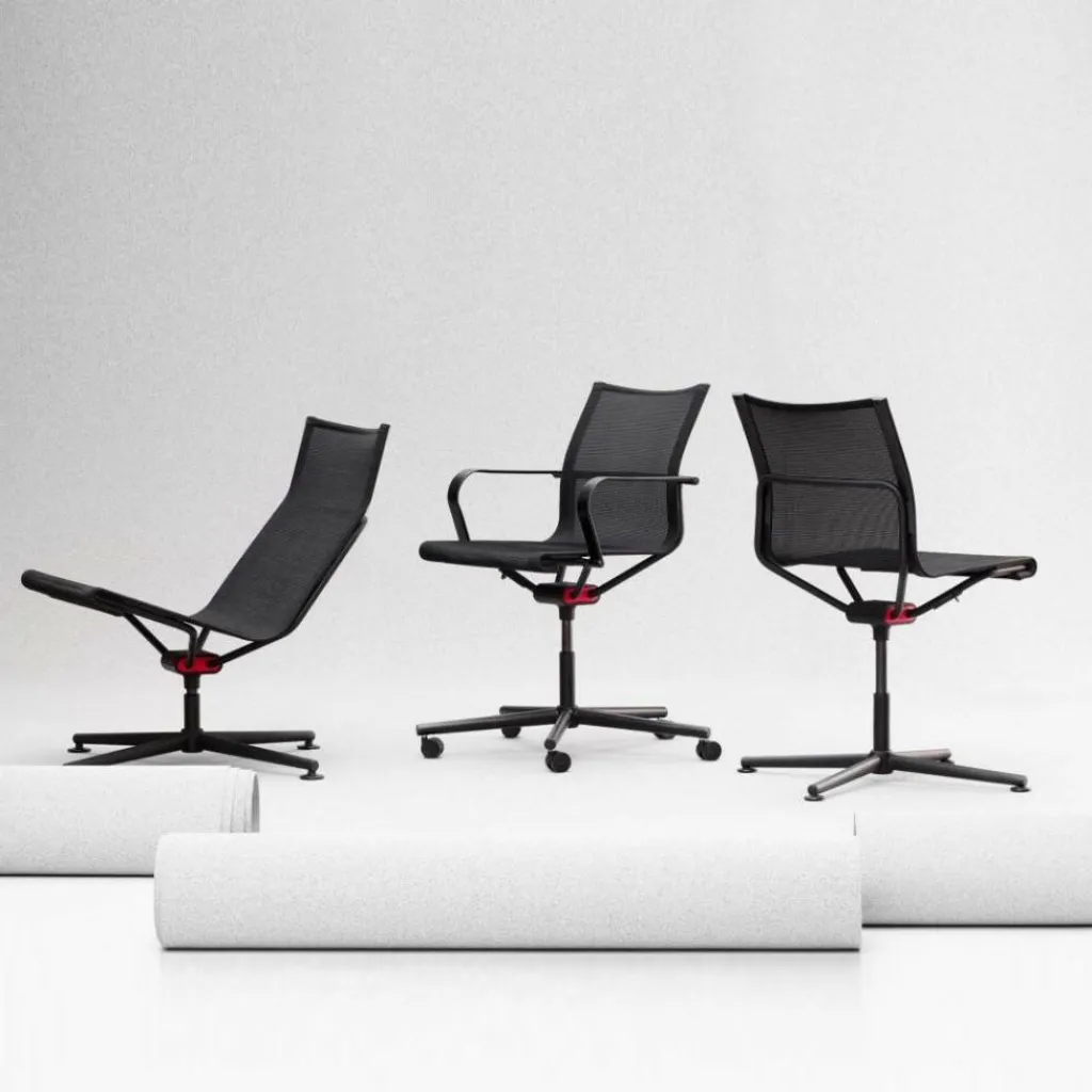 Der D1 Bürostuhl mit Armlehne & Rollengestell wurde von dem Designer Stefan Diez für die Marke Wagner entworfen. Der mittelständische Hersteller aus Bayern gilt wegen seiner konstruktiven Ideen und durch die Verwendung neuer Materialien international als führender Spezialist für Bürostühle. In Zusammenarbeit mit dem Designer und kreativen Ingenieuren entwickelte man das Dondola®-Sitzgelenk, das in alle Richtungen beweglich ist. Dieses dreidimensional bewegliche Gelenk ist das prägende funktionale Element in allen Bürostühlen der Serie D1. Es ermöglicht die ständige Anpassung des Sitzbereiches an kleinste Positionsveränderungen der sitzenden Person. Auch der Winkel zwischen der Rückenlehne und den Armlehnen verändert sich bei jedem Positionswechsel. Diese direkte Anpassung an alle Bewegungen garantiert jederzeit eine optimale Sitzposition und sorgt so für eine deutliche Entlastung der Wirbelsäule.