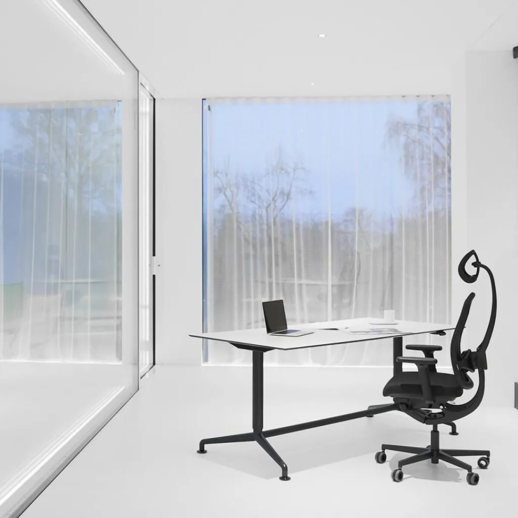 Der Limited Black Edition AluMedic Bürostuhl wurde von Terence Woodgate für die Marke Wagner entworfen. Er ist Teil einer Sonderkollektion, die die ergonomischen Komponenten des Bürostuhlklassikers AluMedic mit einem extravaganten Design verbindet.