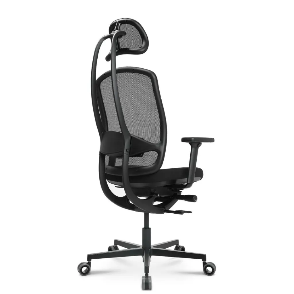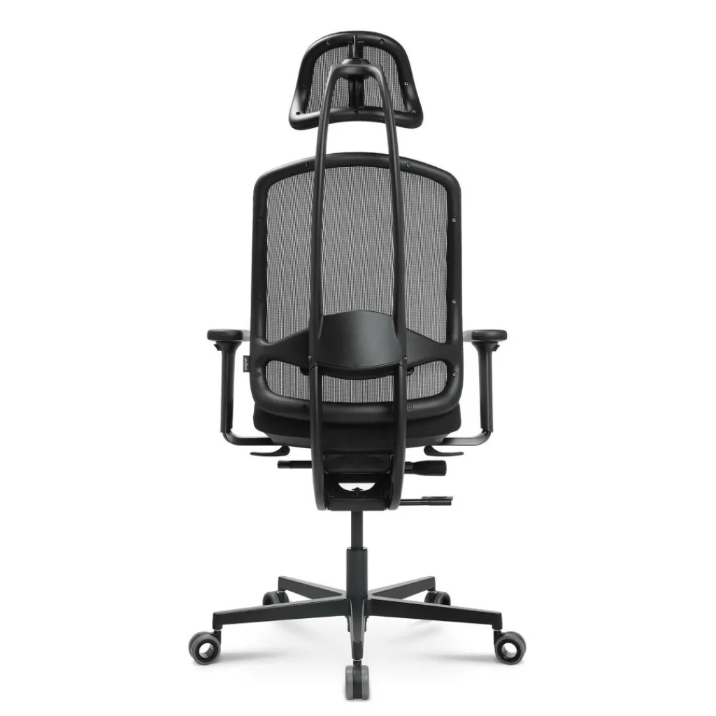 Eine lange Liste an Einstellmöglichkeiten macht den Limited Black Edition AluMedic Bürostuhl zu einem Allroundtalent für den Arbeitsplatz, ganz gleich ob im Büro oder im Homeoffice. So lassen sich Neigung und Tiefe des Sitzes variieren. Die Rückenlehne verfügt über ein dreidimensional bewegliches Gelenk und eine höhenverstellbare Lordosenstütze. Die Armlehnen können über einen Clipverschluss in der Höhe und Breite verändert werden. Und auch die Kopfstütze ist höhenverstellbar und pendelnd gelagert. Eine elastische und atmungsaktive Netzbespannung hält Rücken und Kopf kühl, während der bequeme Muldensitz mit einem komfortablen Stoff bezogen ist und die Armauflagen über ein weiches Softpad verfügen. Für einen stabilen Stand sorgt ein Fußkreuz aus Aluminium. Maximale Flexibilität garantiert dem zum Großteil aus Kunststoff gefertigten Limited Black Edition AluMedic Bürostuhl ein drehbarer Fuß mit fünf Rollen.