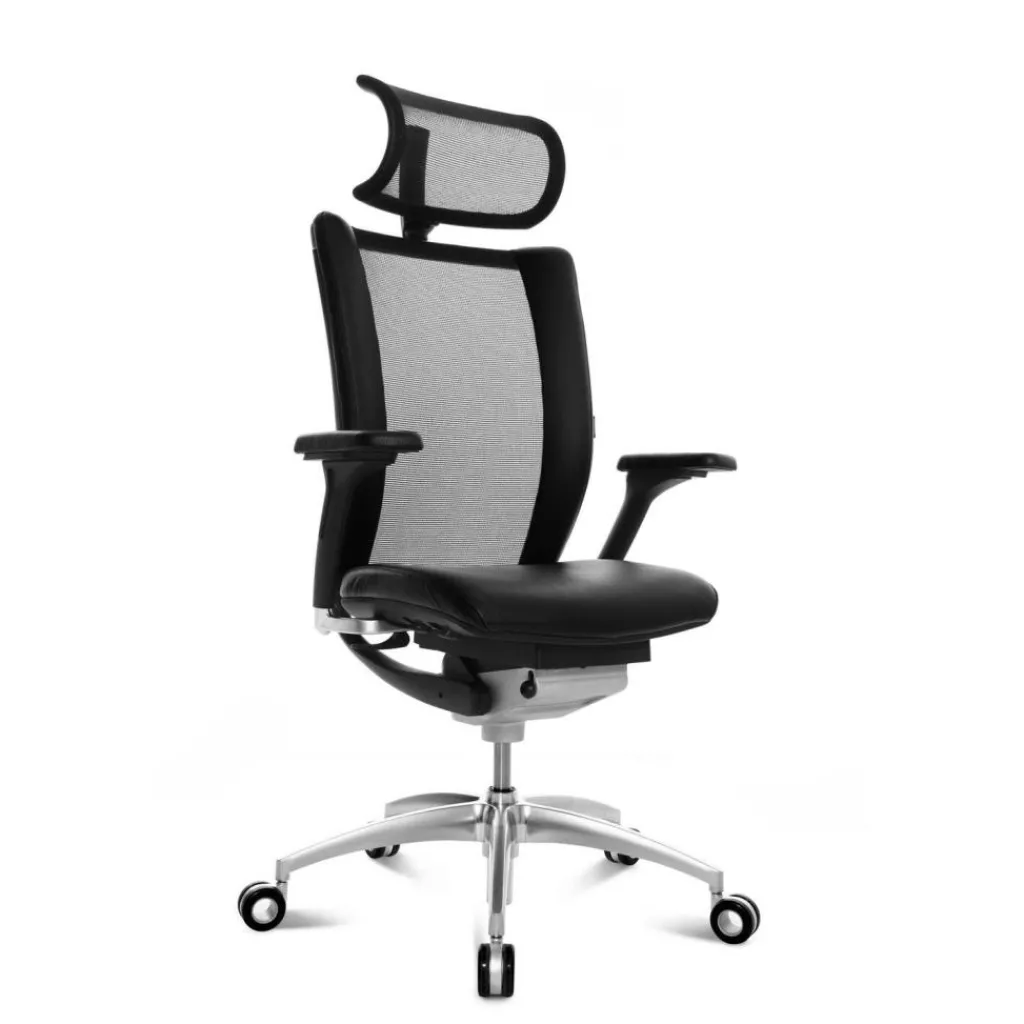 Stilvoller Sitzkomfort im aussagekräftigen Design – mit dem höhenverstellbaren Bürostuhl mit spezieller Tiefenfederung, Komfortsitz mit Memory-Schaumstoff und Kopfstütze mit atmungsaktiver Netzbespannung holen Sie sich ein elegantes Sitzmöbel in Ihr Büro, das in Form und Funktion überzeugt.