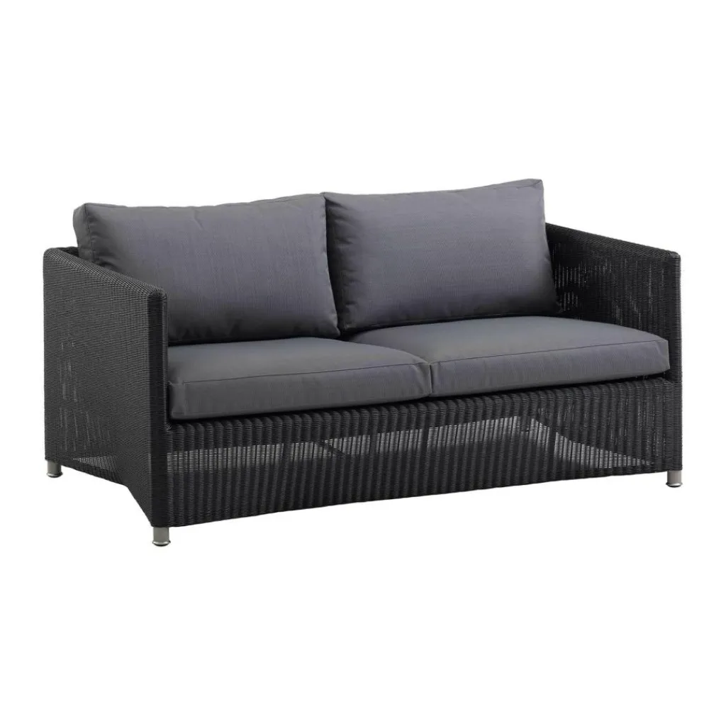 Das Diamond 2-Sitzer Gartensofa wurde von Foersom & Hiort-Lorenzen MDD für die Marke Cane-Line entworfen. Die für 2 Personen geeignete Sitzgelegenheit gehört zu einer stilvollen Kollektion, die auch Loungesessel mit niedrigem und hohem Rücken, Hocker und 3-Sitzer-Sofas umfasst.