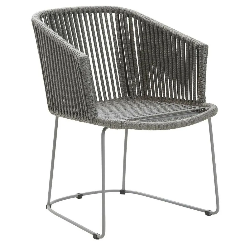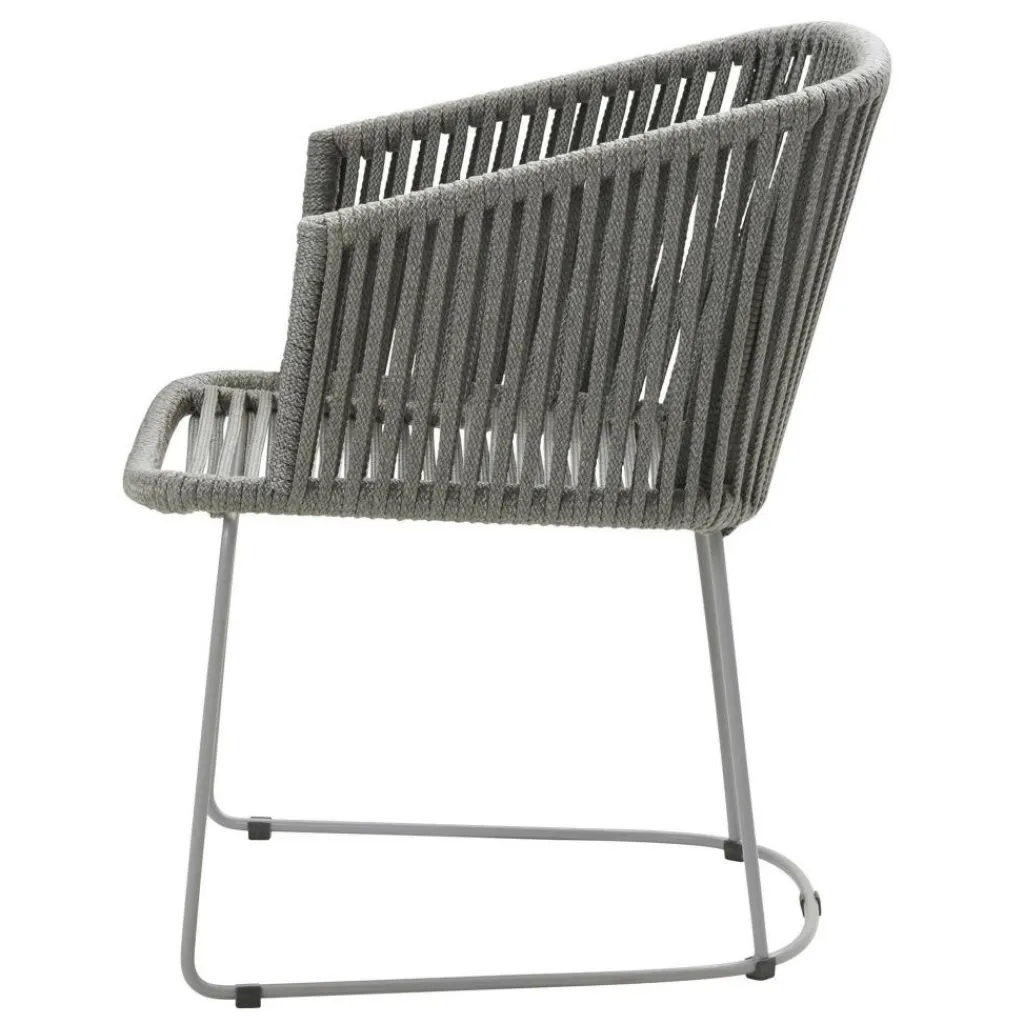 Die Form des Moments Gartenarmlehnstuhl mit Kufen erinnert ein wenig an einen klassischen Lehnstuhl. Er bietet durch die sanft abfallenden seitlichen Lehnen eine geschützte und sehr bequeme Sitzposition, zu der auch die angenehme Sitzhöhe von 42 cm beiträgt. Die Basis des Moments Gartenarmlehnstuhl mit Kufen ist ein Gestell aus pulverbeschichtetem Stahlrohr. Die Sitzfläche, Rücken- und Armlehnen bestehen aus Soft Rope, einem besonderen Polypropylen-Gewebe. Alle Materialien sind widerstandsfähig gegen Nässe und UV-Strahlung. Der Lehnstuhl kann deshalb das ganze Jahr hindurch im Garten, auf dem Balkon oder der Terrasse verbleiben. Für den Stuhl ist zusätzlich ein passendes Kissenset erhältlich.