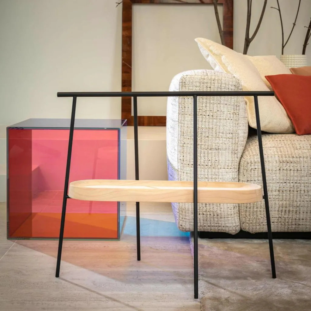 Der Pinch Beistelltisch länglich wurde vom Studio Nendo für die Marke Cappellini entworfen. Die moderne Kreation des Designstudios aus Tokio verkörpert in ihrem luftigen Design namensgebend eine Prise Leichtigkeit und findet seinen Platz als kleiner Ablagetisch oder Serviertisch neben dem Sofa oder dem Lesesessel.